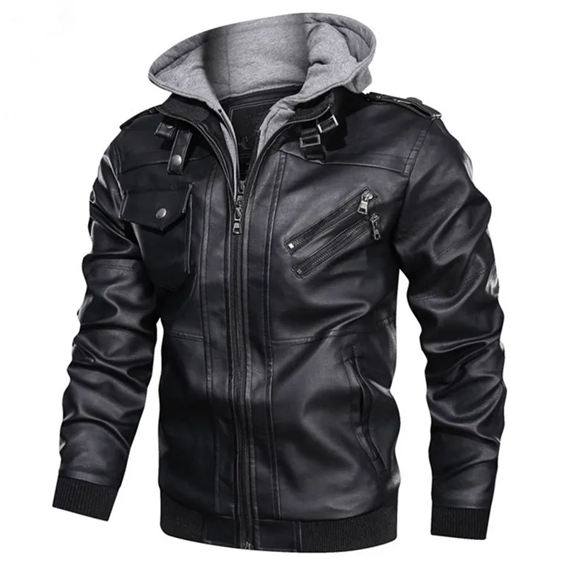 Мужская мотоциклетная кожаная куртка, Повседневная приталенная куртка-бомбер с капюшоном, куртка-пилот из искусственной кожи с косой молнией европейского размера, Осень-зима
