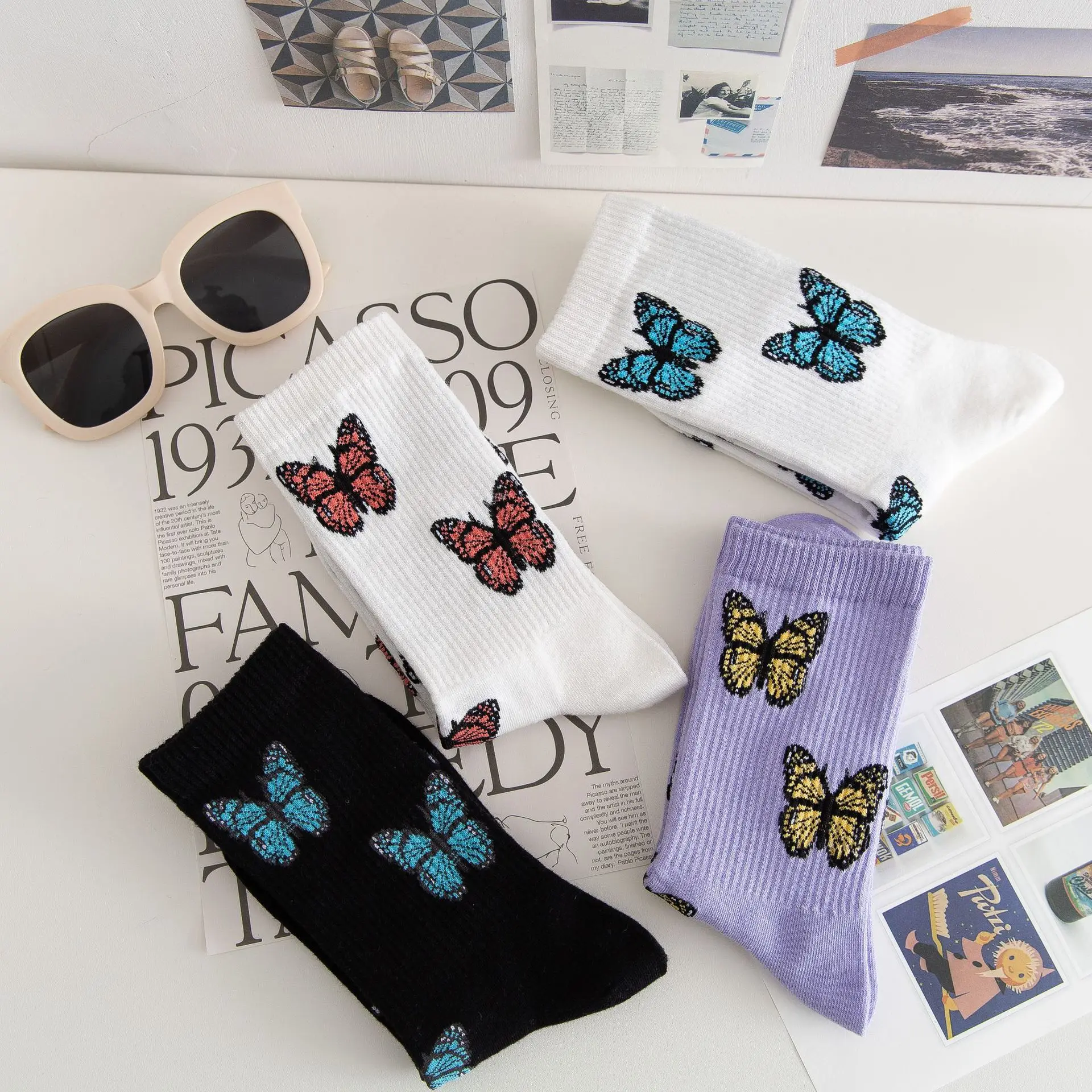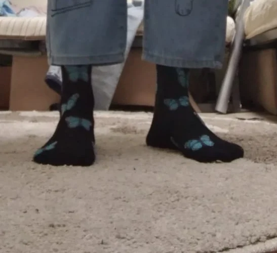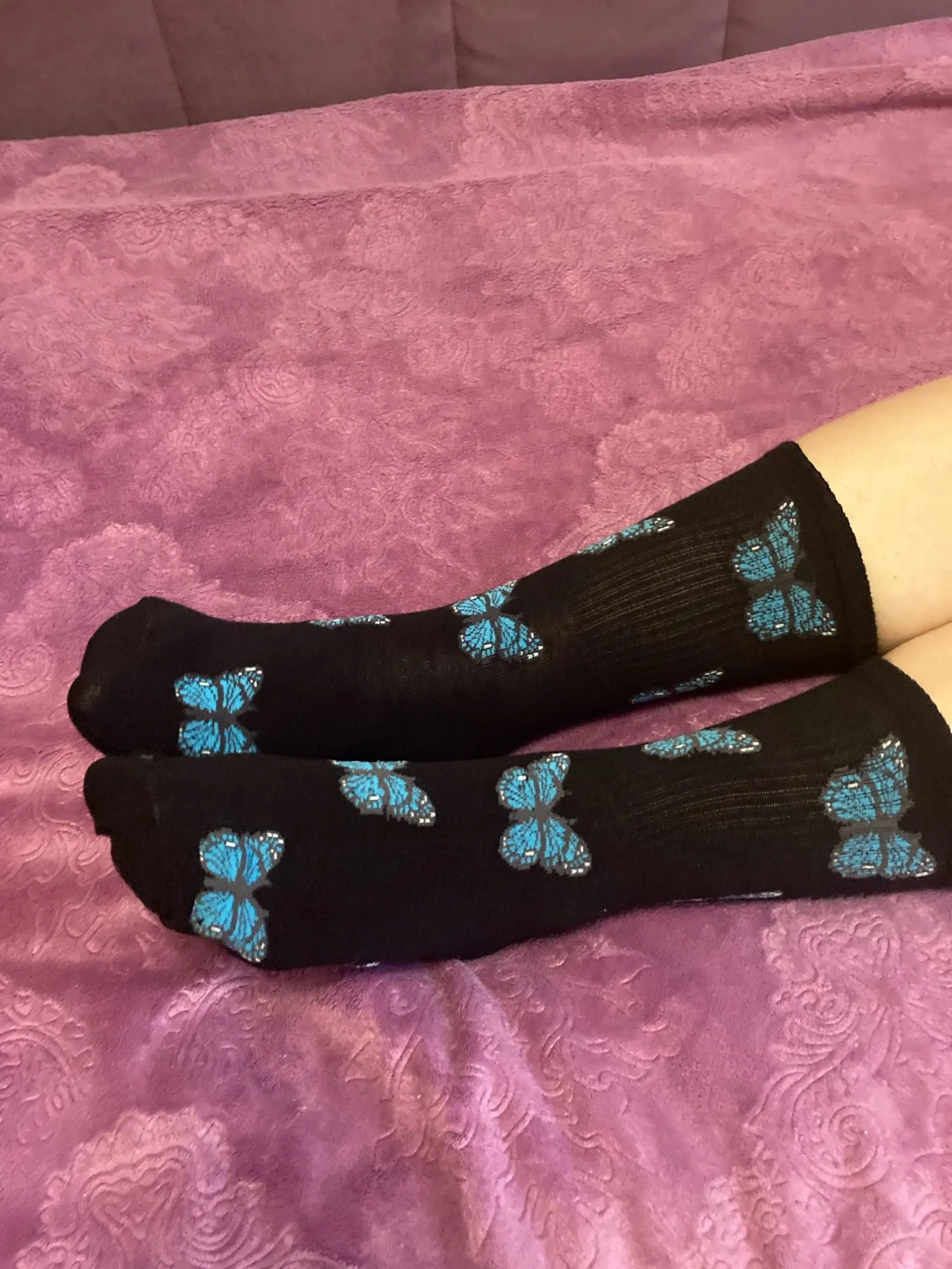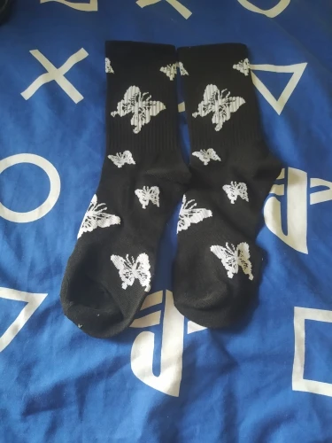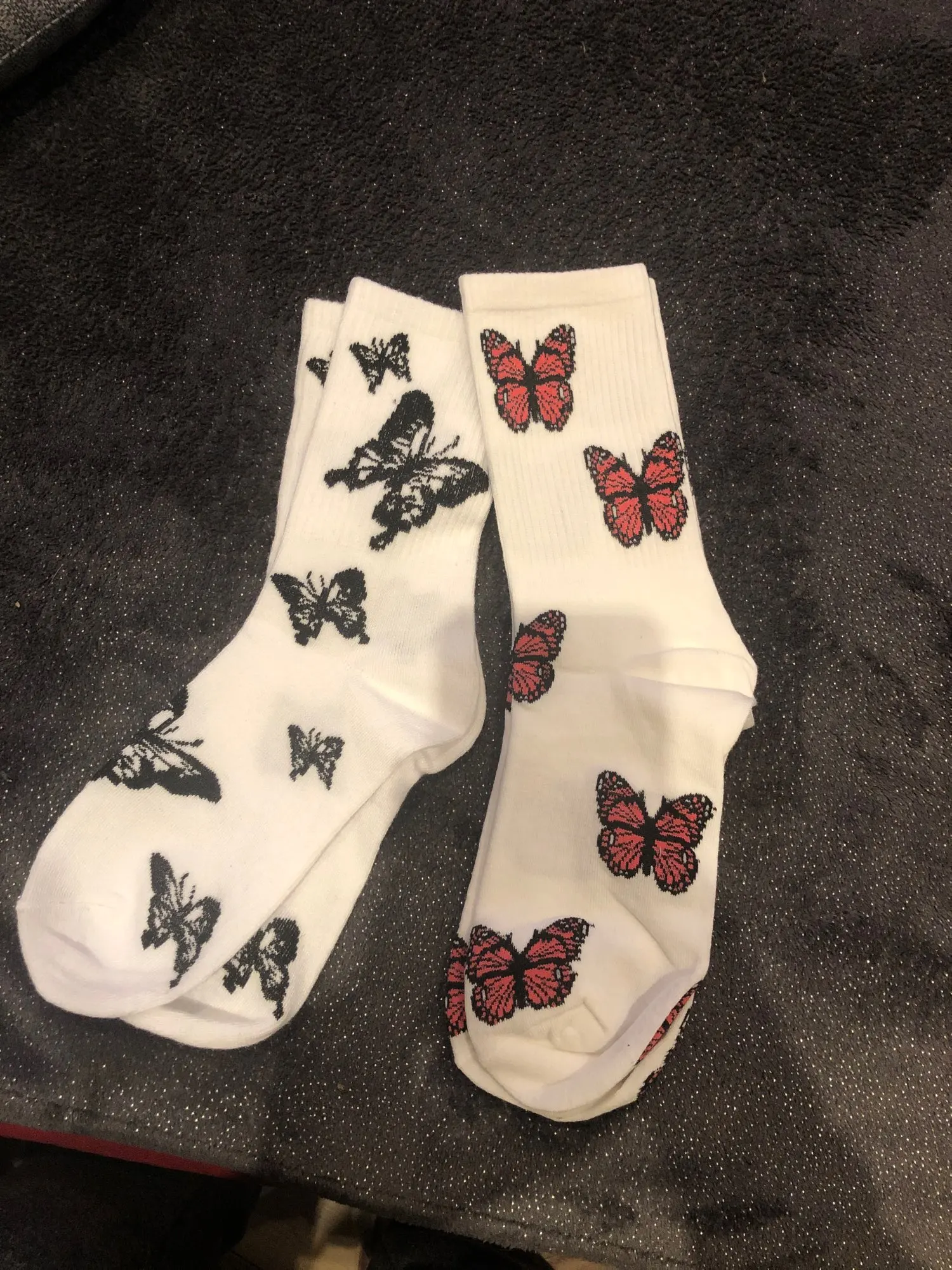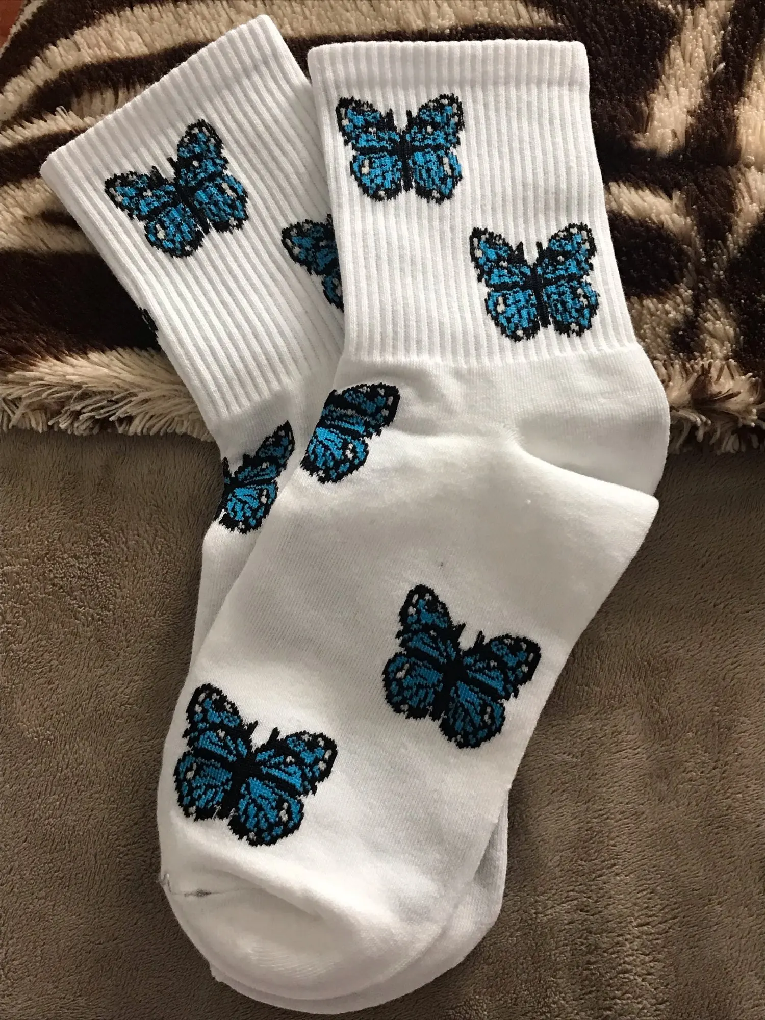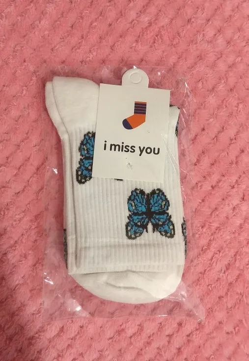 Цвет лавандовых носков с бабочками намного бледнее, чем на фотографии.