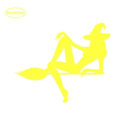 Лидер продаж, сексуальная женская наклейка HotMeiNi на автомобиль Хэллоуин, ведьма, метла, Виниловая наклейка для окна, бампера, ноутбука, черныйсеребристый, 16*13,3 см