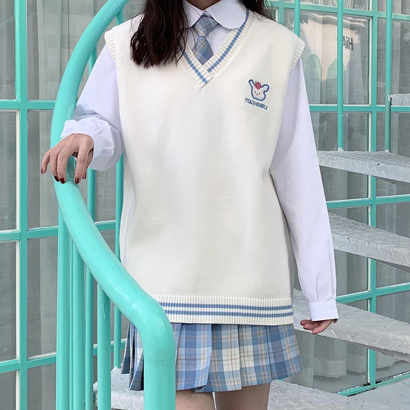 Осенне-весенний мягкий жилет с вышивкой в японском стиле для девушек, студенческий Британский свитер, вязаный жилет принцессы для чайной вечеринки
