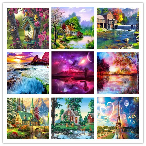 5D DIY алмазная живопись по номерам набор Мультяшные пейзажи хрустальные стразы Алмазная вышивка картины Вышивка крестом