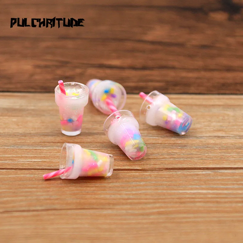 8 шт Розовый 9*10*18 мм имитация смолы 3d жемчуг молочный чай чаша Шарм с коробкой пластиковый материал для DIY ювелирных изделий ожерелье