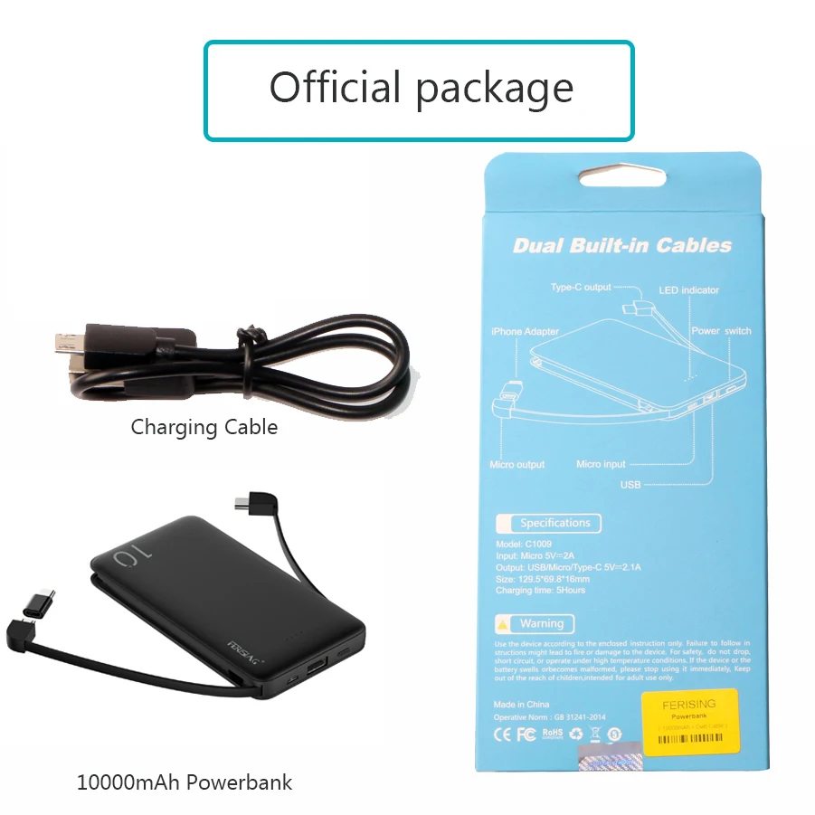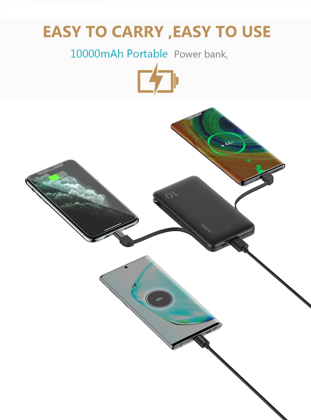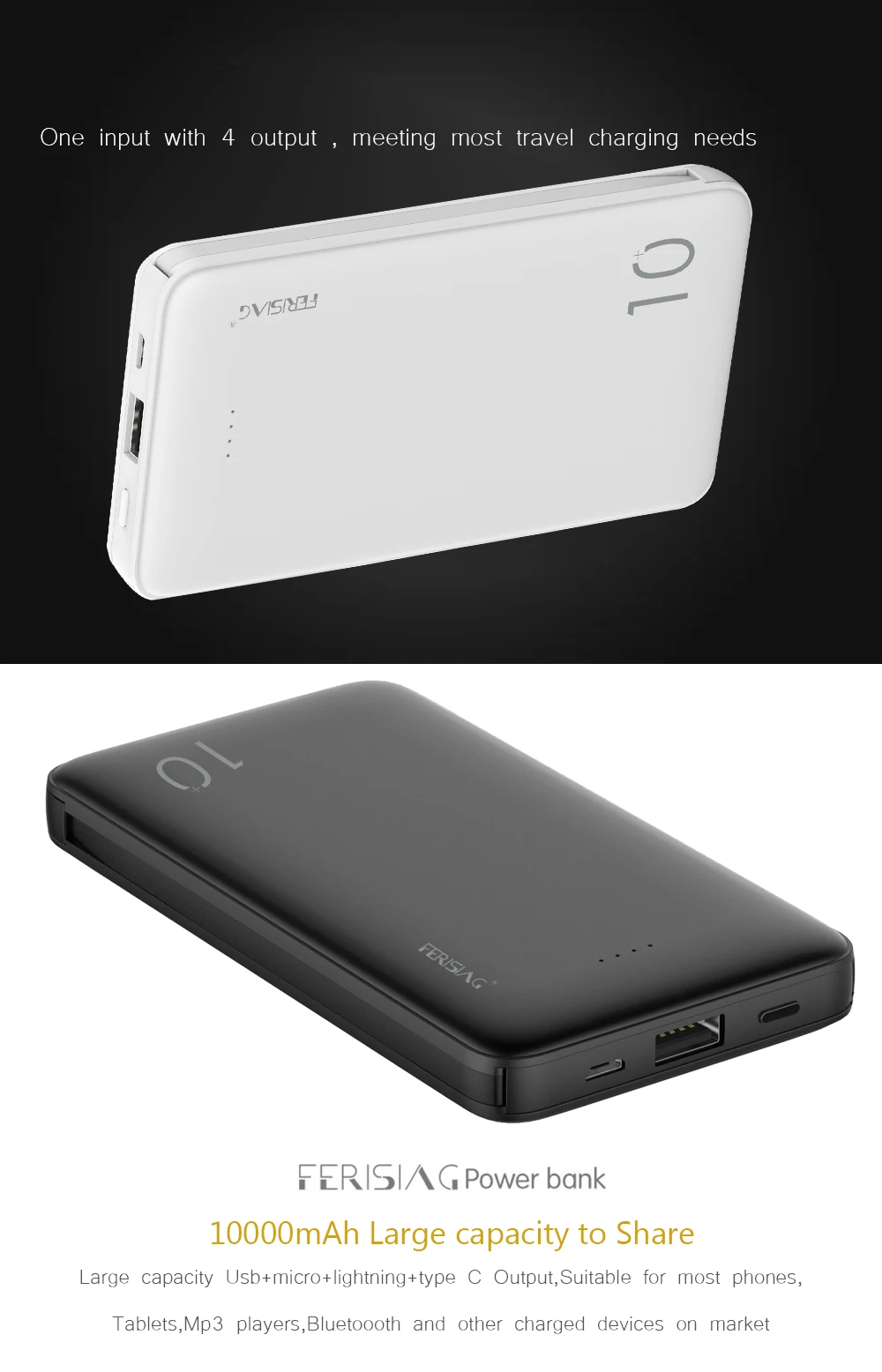 Внешний аккумулятор FERISING, ёмкость 10000мАч, портыUSB, подойдёт для Xiaomi, iPhone и Samsung