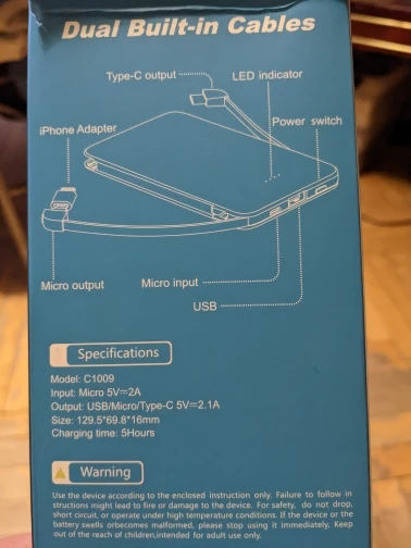Заказал 11.11 - получил на Новой почте 3.12. Всё, как в описании, коробка с банкой и отдельно чехол. Пришла заряженная на 100%, провода присутствуют, переходник для lightning тоже. В общем, отличная вещь для зарядки Ваших мелких гаджетов 5V 2.1A, т.к. быструю зарядку не поддерживает для современных смартфонов. Продуктом доволен, качество сборки отличное, матовый пластик, прорезиненные шлейфы проводов. Озыв дополню позже. Товар и магаз рекомендую
