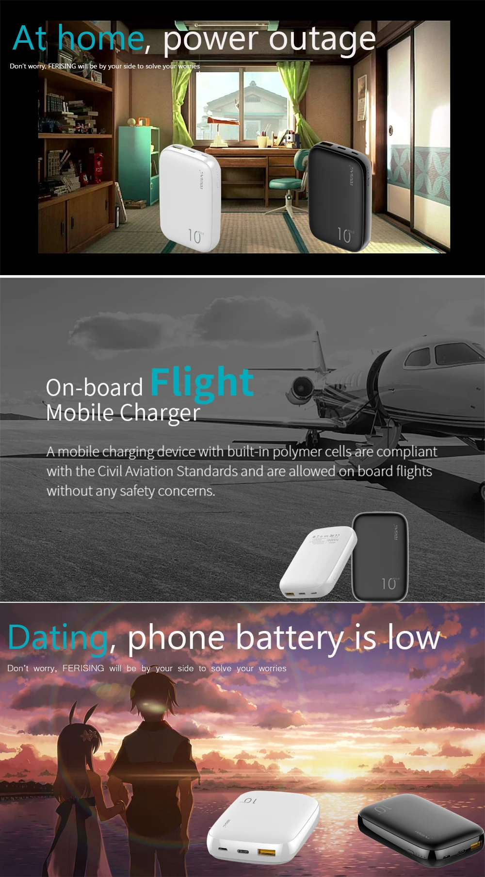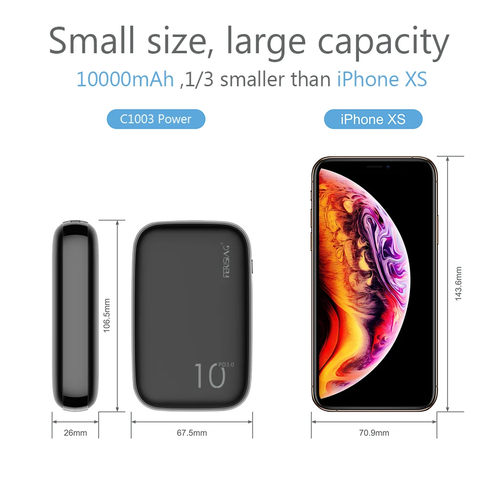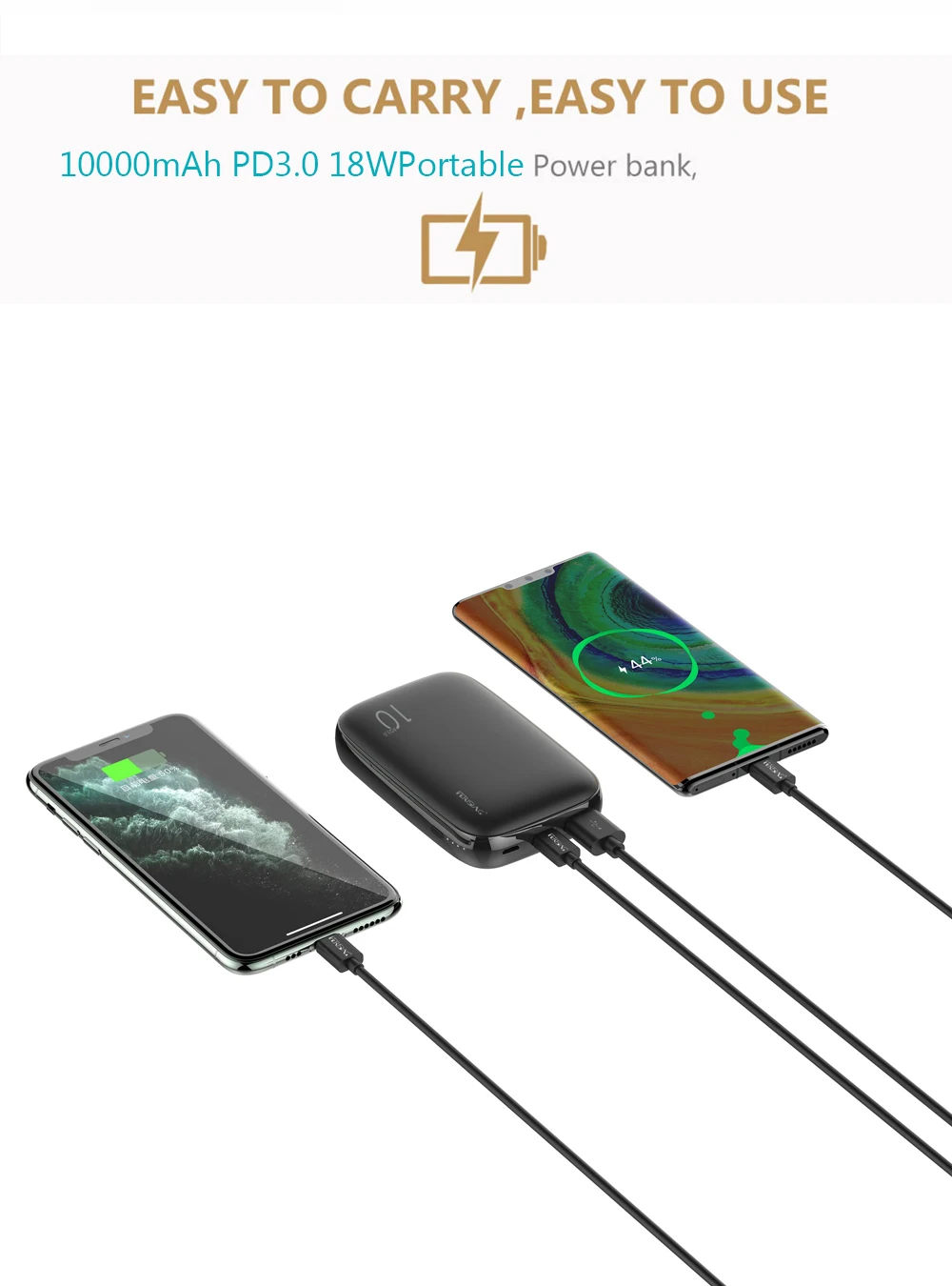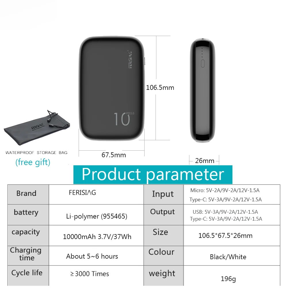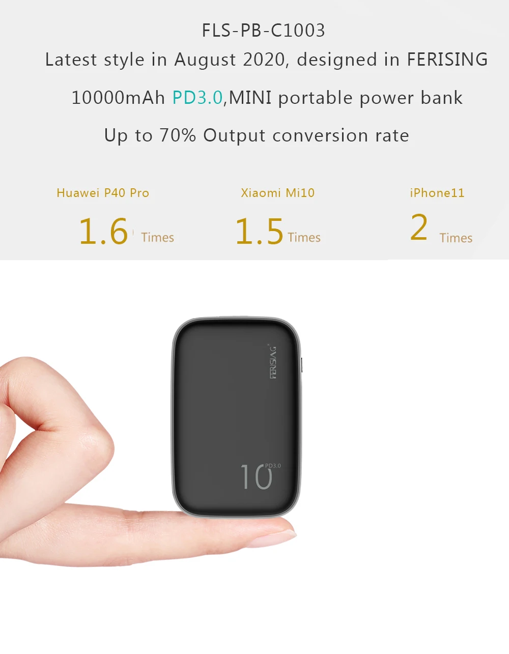 Внешний аккумулятор FERISING, ёмкость 10000мАч, портUSBC, поддержка быстрой зарядки PD3.0 и QC3.0, подойдёт для XiaomiMi