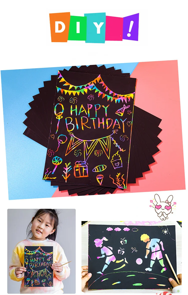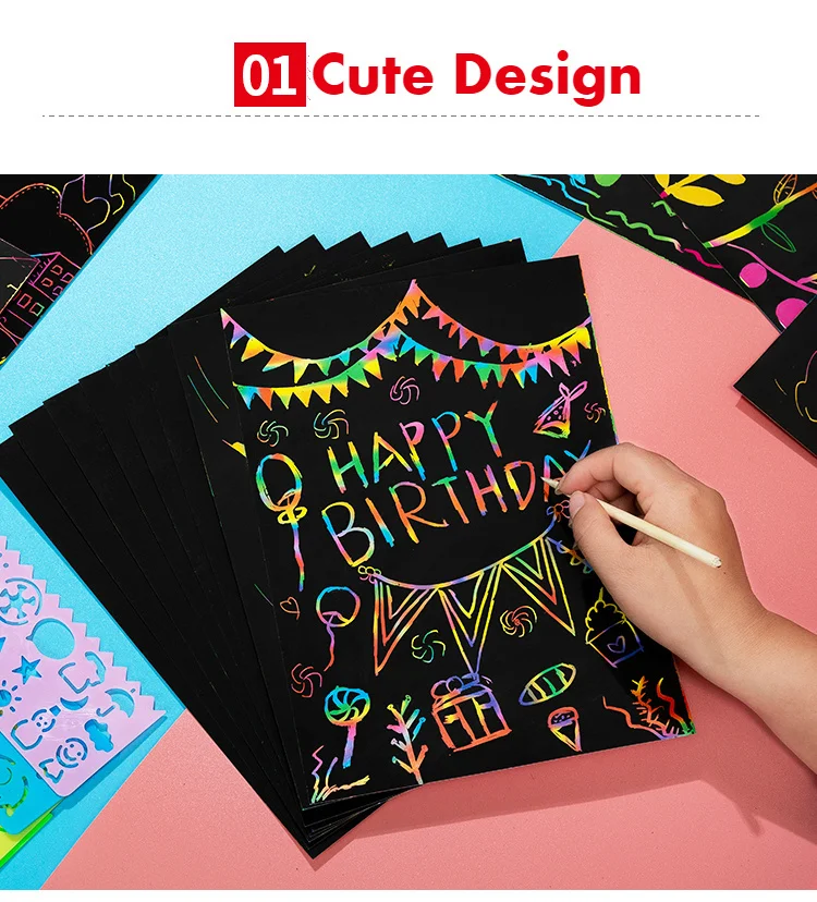Набор для рисования, волшебный Радужный цвет, бумага для скретч Арта открыток, трафарет для граффити палочек, художественная роспись, Обучающие игрушки, подарок