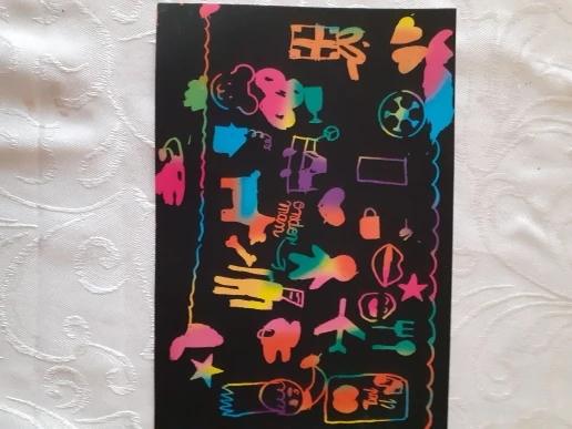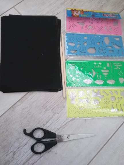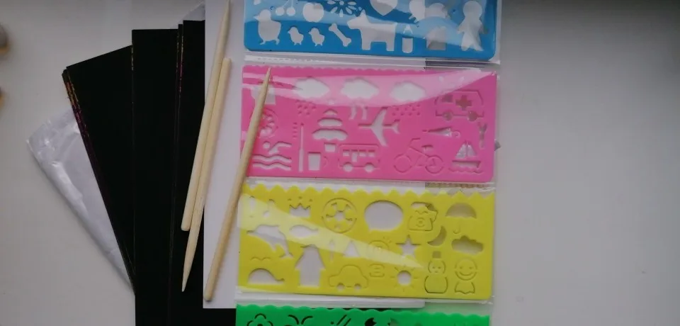 Спасибо. Набор очень понравился дочери (6 лет). Доставка не долгая, отслеживалось. Мне и самой было интересно. В некоторые шаблоны стек не входит, применили зубочистку. Формат а5