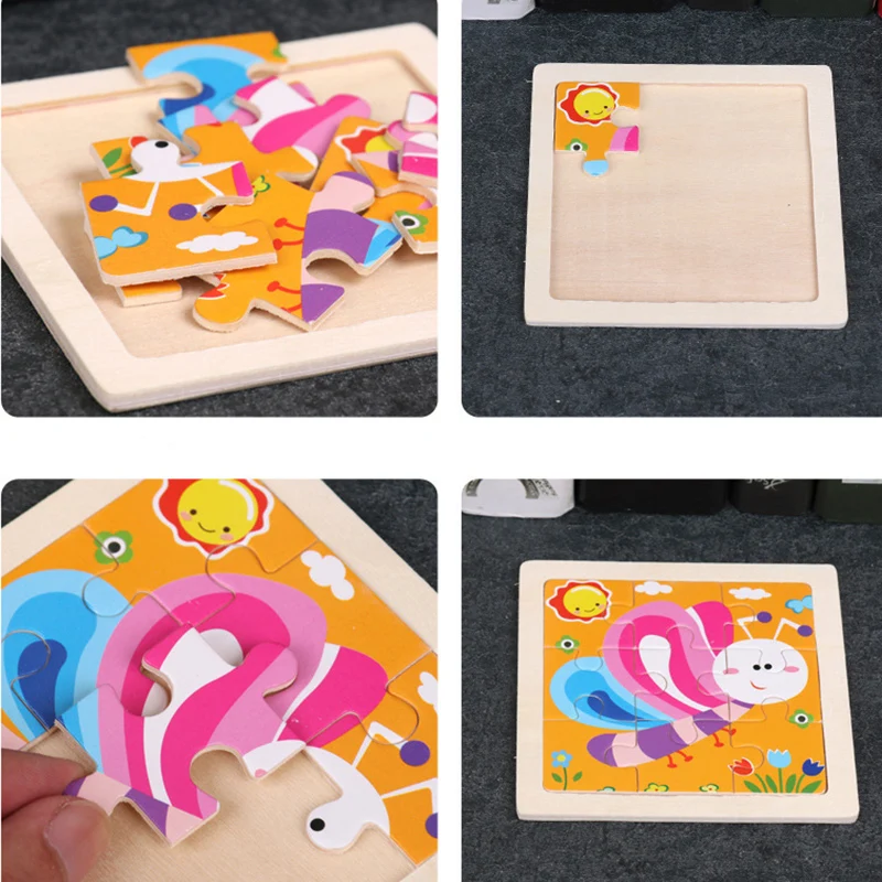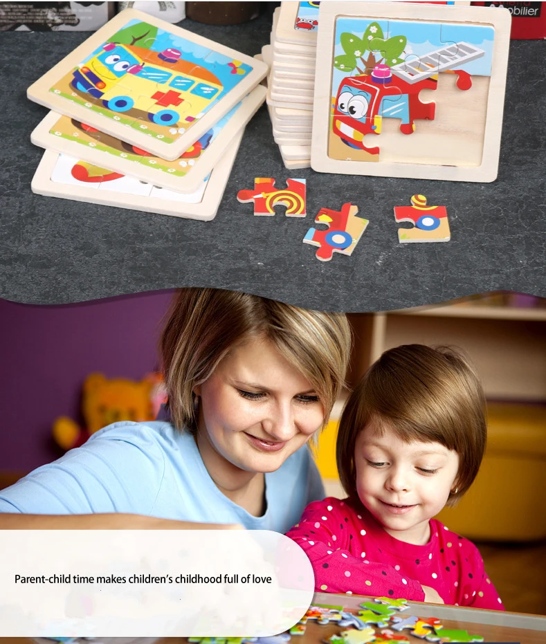 Детский мини-пазл, 9 элементов, 3D, игрушечная деревянная головоломка
