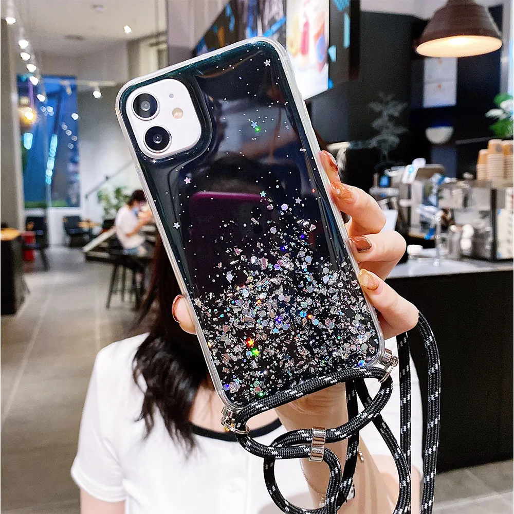 Блестящий ремешок, шнур, цепочка, ожерелье для телефона, ремешок для телефона, чехол для iPhone 12 11 Pro Max 6 7 8 Plus XS Max XR X