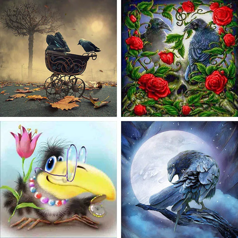 Алмазная 5D картина сделай сам, вышивка Ворона в темноте, Ворон с животными, полное обучение, вышивка крестиком, домашний декор U66