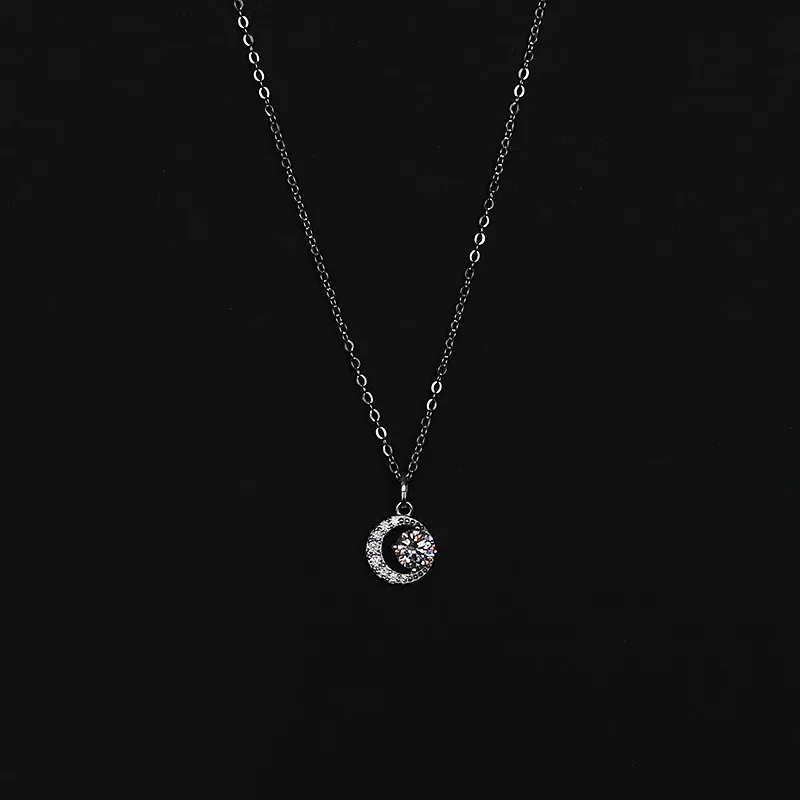Ожерелье из стерлингового серебра 925 пробы с Луной, серебряная подвеска, блестящая цепочка до ключиц из циркония, Золотое простое Ретро Ювелирное Украшение для женщин, подарок на праздник