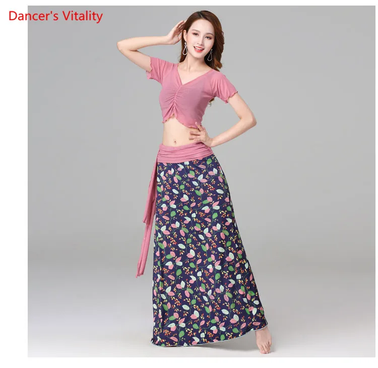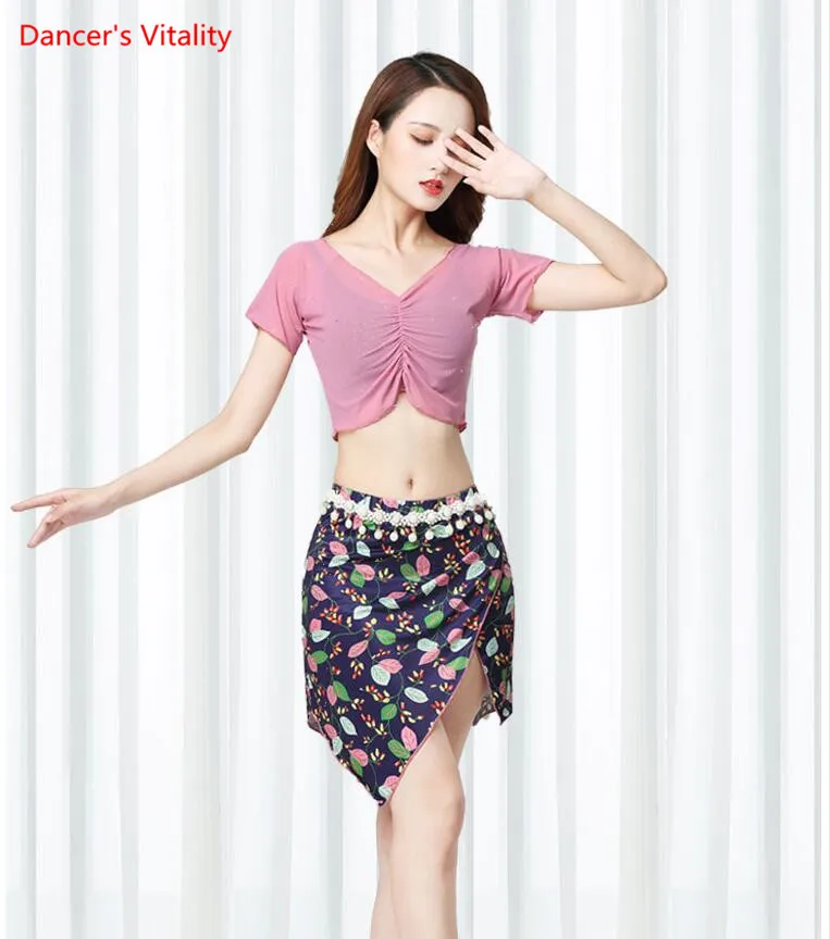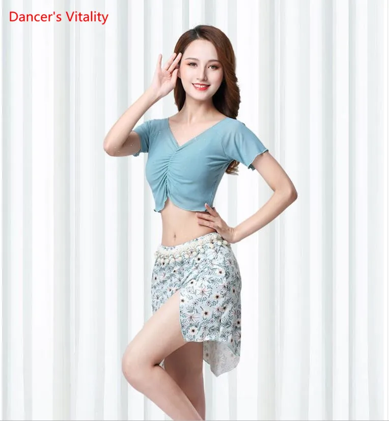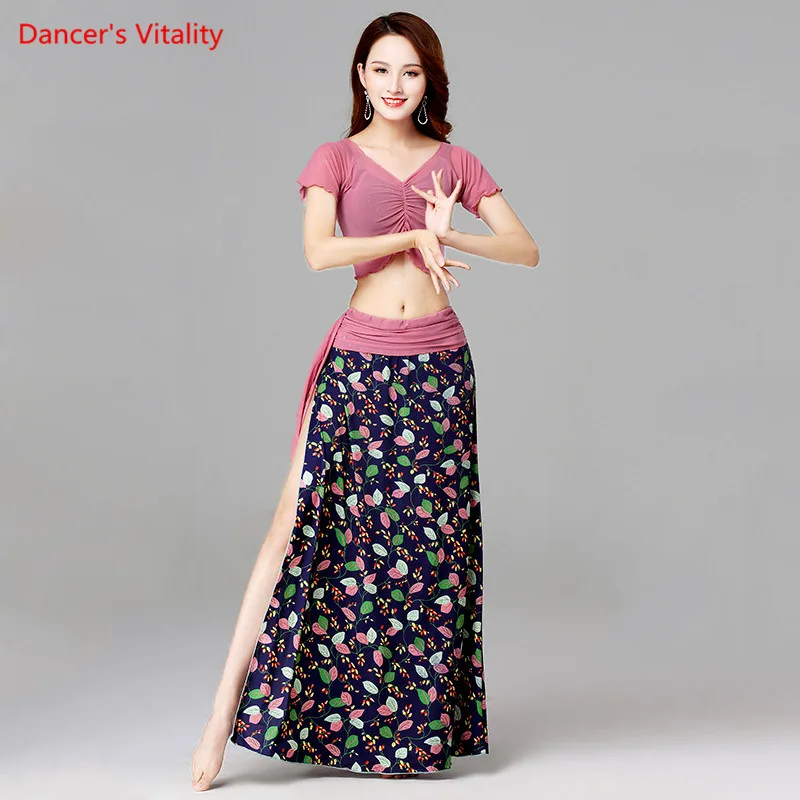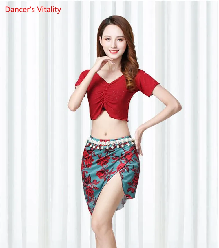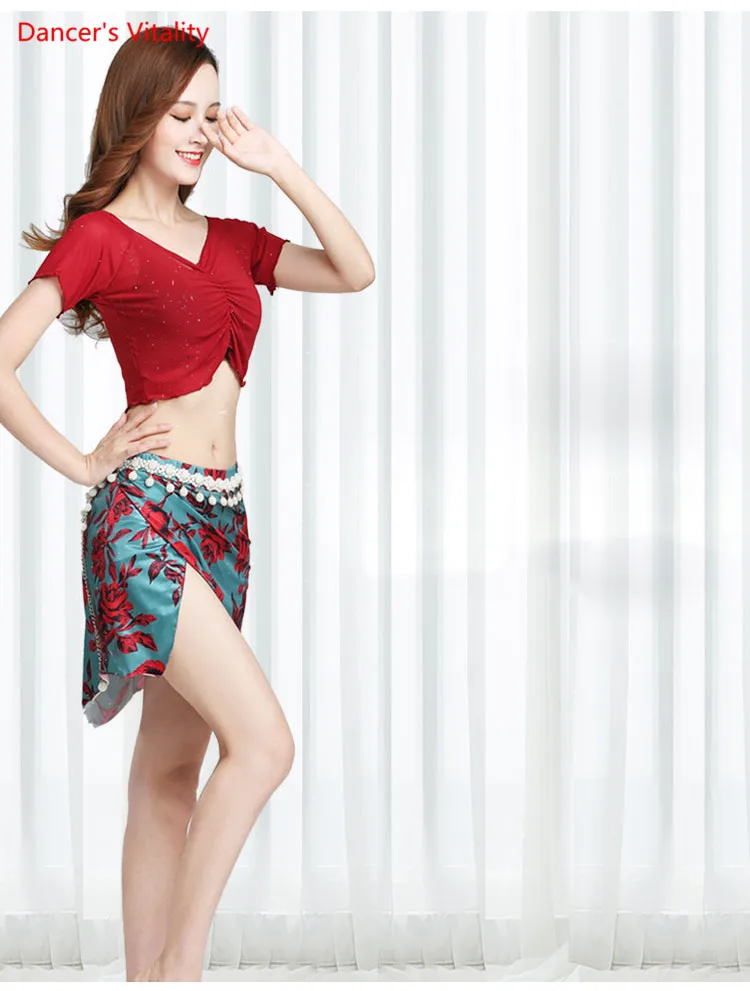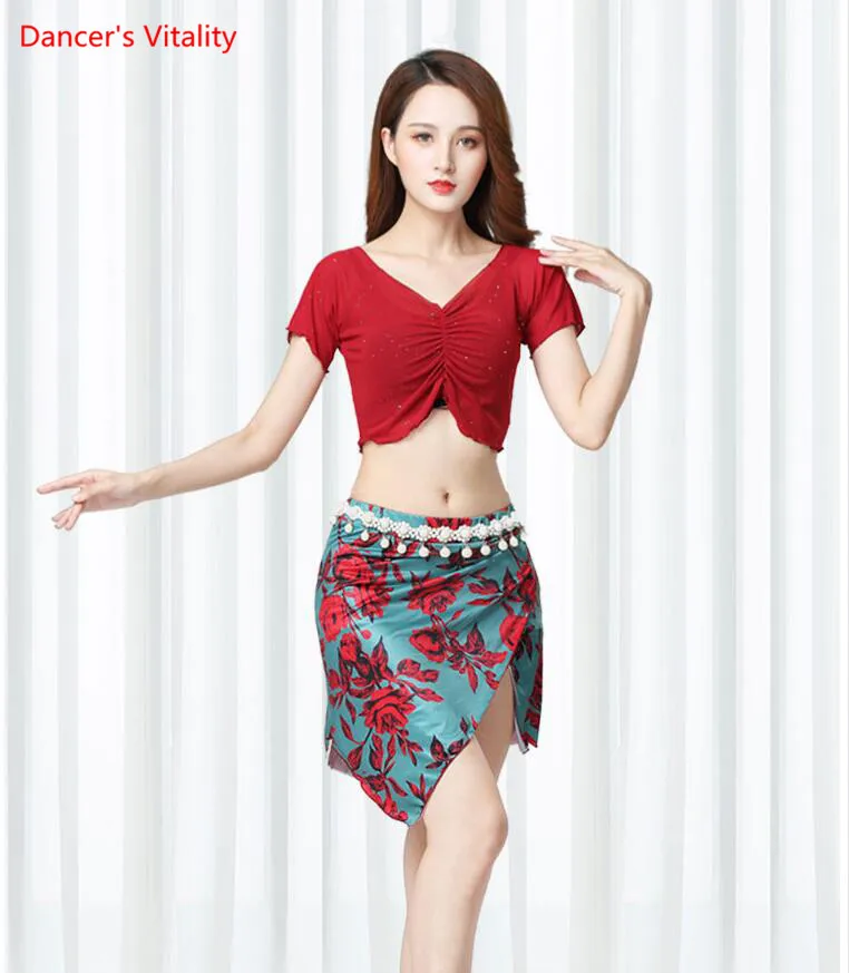 Женский костюм для танца живота, элегантная одежда для восточных выступлений с V-образным вырезом, длинная юбка, одежда для тренировок, рубашка для занятий танцами