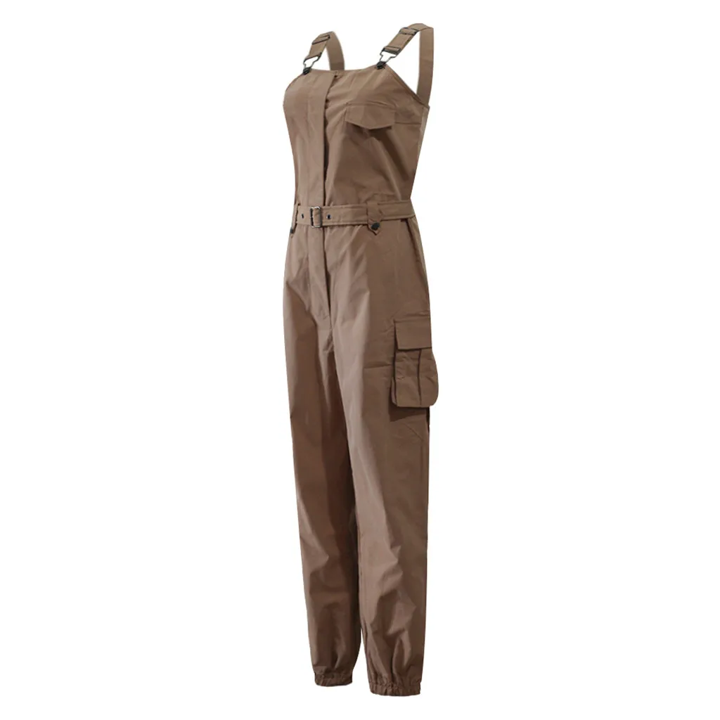 Комбинезон женский длинный, цвета хаки, розовый, с карманами