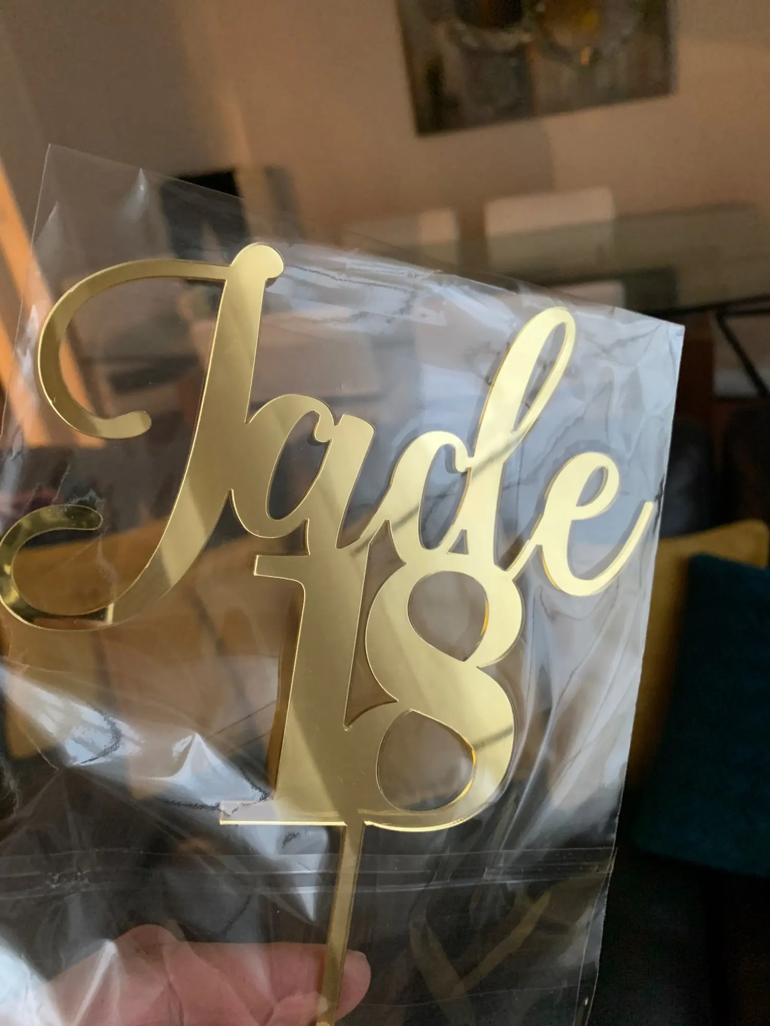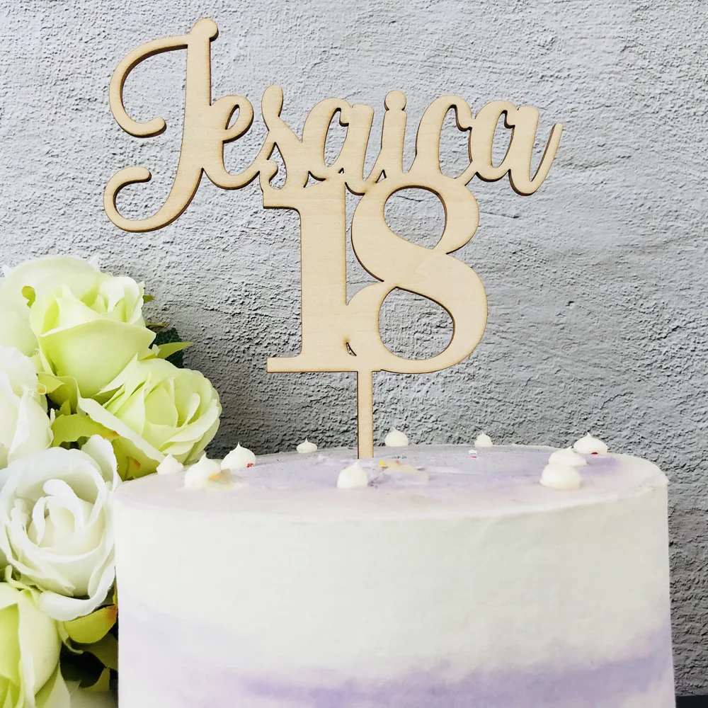 Персонализированный Деревянный Топпер для торта С Днем Рождения, имя на заказ и возраст Золотой зеркальный Топпер для торта на день рождения, элегантный декор для дня рождения