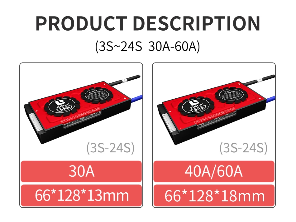 Daly BMS 30 А-60 А 72 в 60 в 48 в 24 в 3S -24S для литиевой батареи 18650 для скутера, Бесплатная Bluetooth BMS 3S 12 В