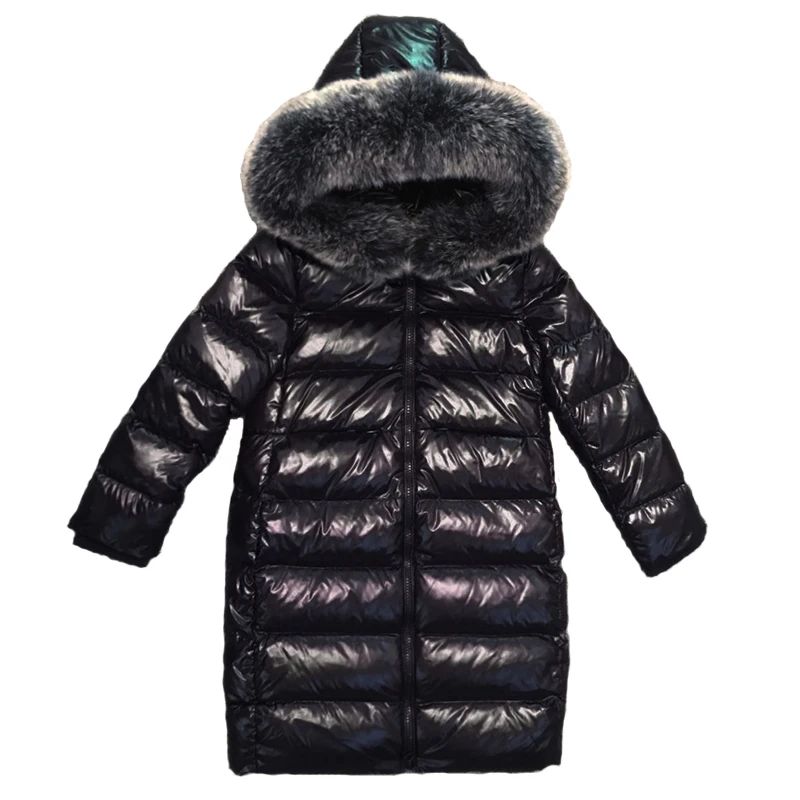 Детское пуховое пальто с капюшоном, зимнее, с натуральным мехом, дл...