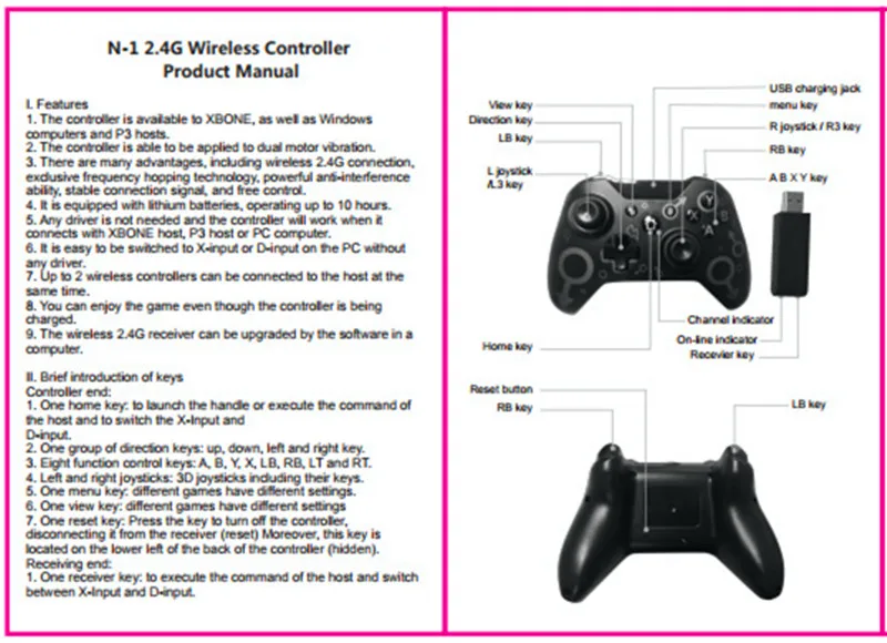 Спецификация: Беспроводной игровой контроллер 2,4 ГГц для Xbox One PS3 PC Характеристика: 1. Контроллер используется для XBOX ONE, для PS3, для ПК-компьютеров. Его можно использовать без установки драйвера. 2. Эксклюзивная технология изменения частоты, беспроводное соединение 2,4 ГГц, расстояние передачи до 8 м. 3. Контроллер может переключаться между X-вход (проводное соединение) или D-вход (беспроводное соединение) на ПК. 4. Встроенный аккумулятор, 600 мА литиевая батарея, непрерывное использование 8 часов, в режиме ожидания до 45 дней. 5. Контроллер поддерживает функцию двойной вибрации двигателя. 6. Контроллер также может заряжаться синхронно во время использования. 7. Совместимость с адаптером Brook. Цвет: серый, синий, розовый (на выбор)