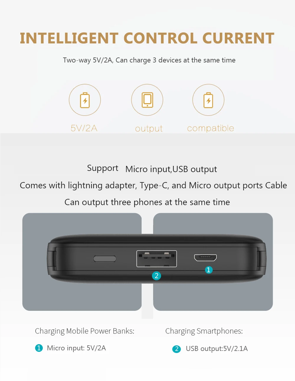 Feature 2Universal powerbank USB power bank for iphone 6 6s 7 8 XR XS MAX