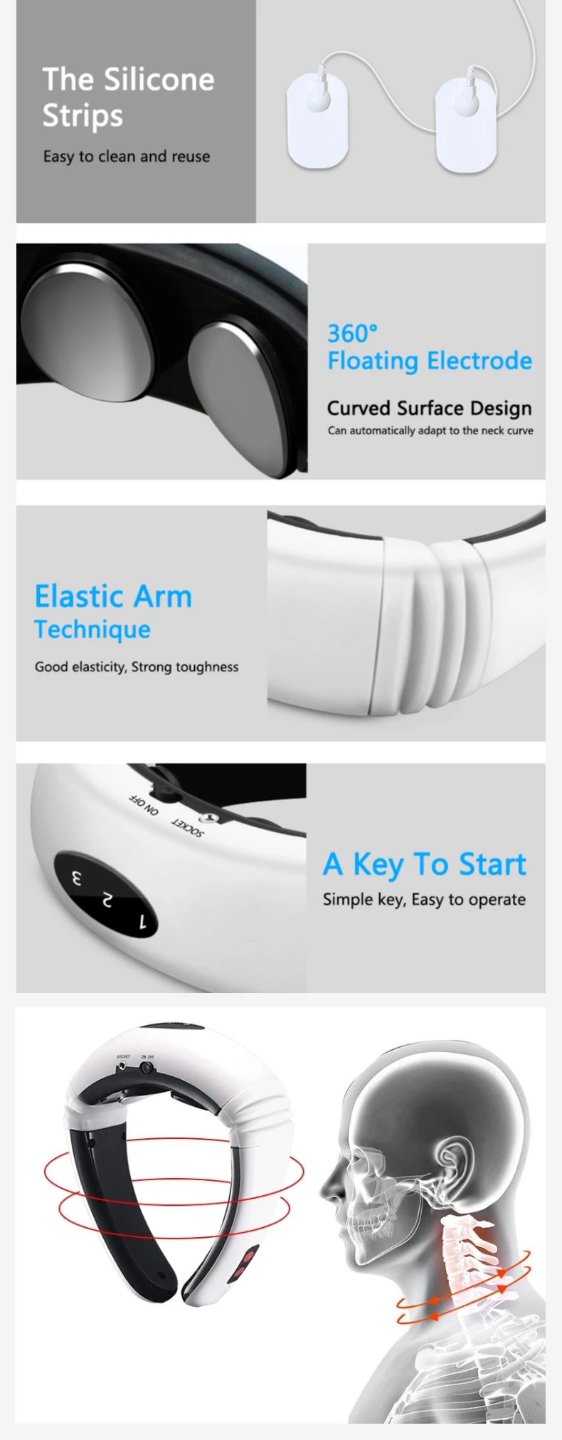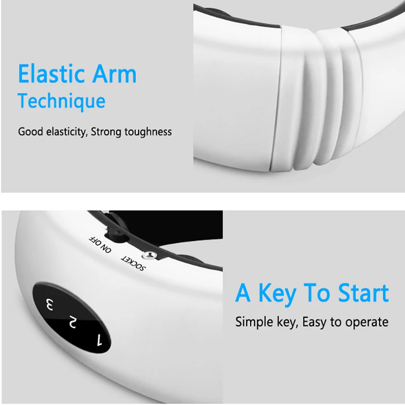 Особенности1. Технология 3D smart позволяет легко регулировать электрод в соответствии с кривой шеи.2. Можно использовать на шее, спине, ногах, талии и т. д. для всего тела.3. Может сбалансировать нервную систему, улучшить подачу кислорода, микроциркуляцию и питание клеток тканей.4. Многофункциональный массажер для облегчения боли с электромагнитной импульсной магнитной терапией.5. Личный массажер, маленький и портативный, массирует в любое время в любом месте.