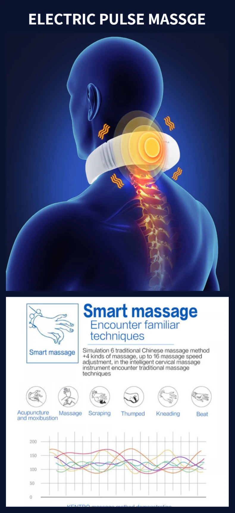 Электрический массажер для шеи cervicale, облегчает боль, улучшает кровообращение, EMS массаж, медицинский массажер, портативный