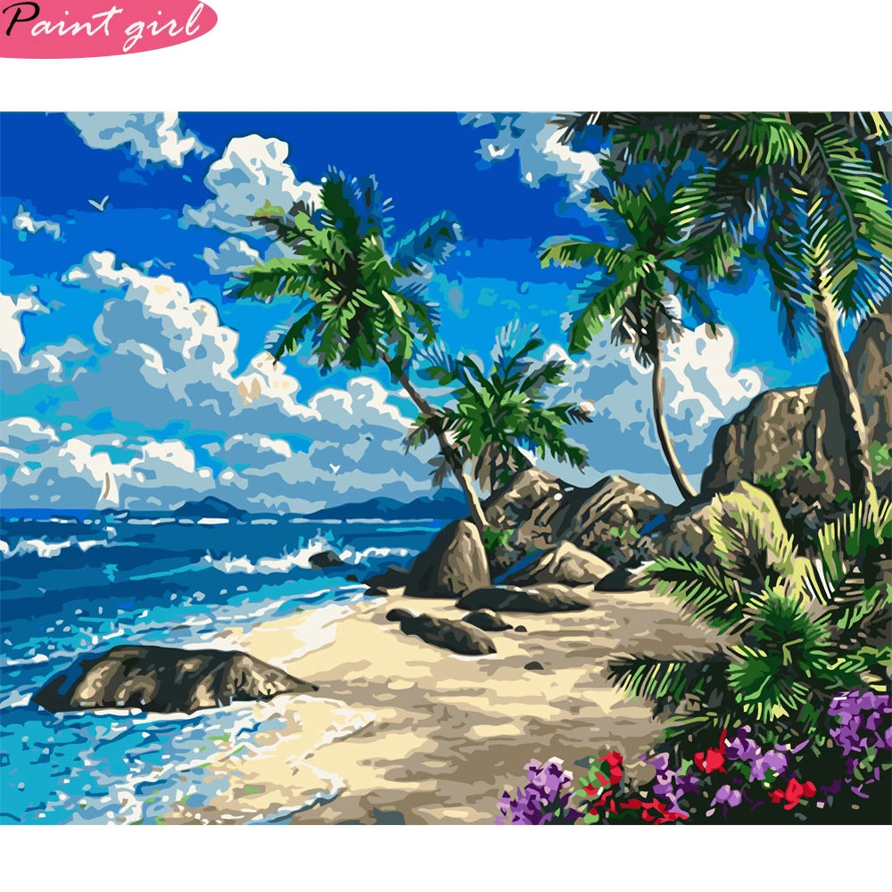 DIY живопись по номерам морской пейзаж Современная Настенная Картина на холсте акриловая Раскраска по номерам подарок VA-2158