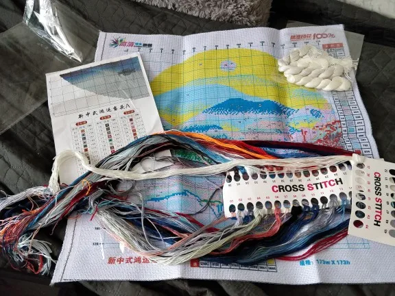 Пишу 2 одинаковых отзыва, на 2 набора, заказанные у 1 продавца. Я впервые заказала товары для хобби на AliExpress, поэтому не с чем сравнить. Оба набора для вышивки пришли аккуратно упакованными. В составе каждого: изображение готовой вышивки, канва с рисунком и легендой, нитки, ножницы, нитковдеватель, иглы. Хочу отметить, что иглы с большими ушками. Цвета ниток насыщенные, яркие. Пялец нет. Продавца рекомендую, спасибо.