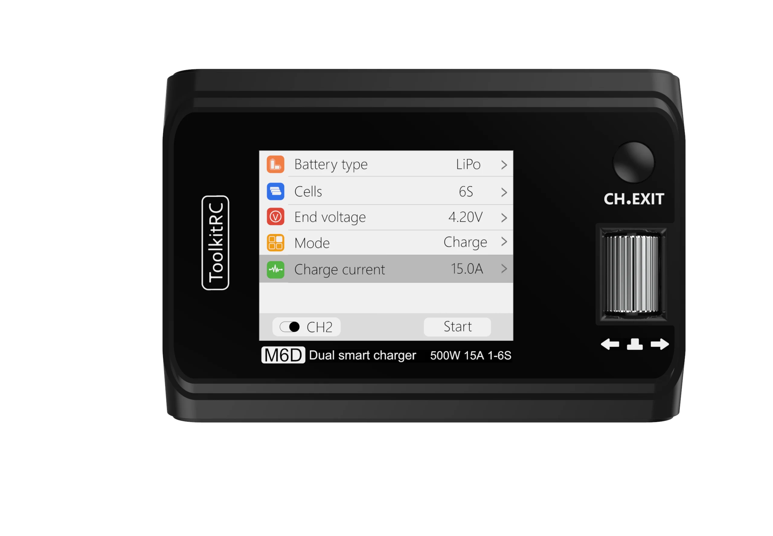 Интеллектуальное зарядное устройство ToolkitRC M6D 500w 15A DC с двойным зарядным устройством, балансировка батареи для 1-6S Lipo LiHV Lion NiMh Pb Cell