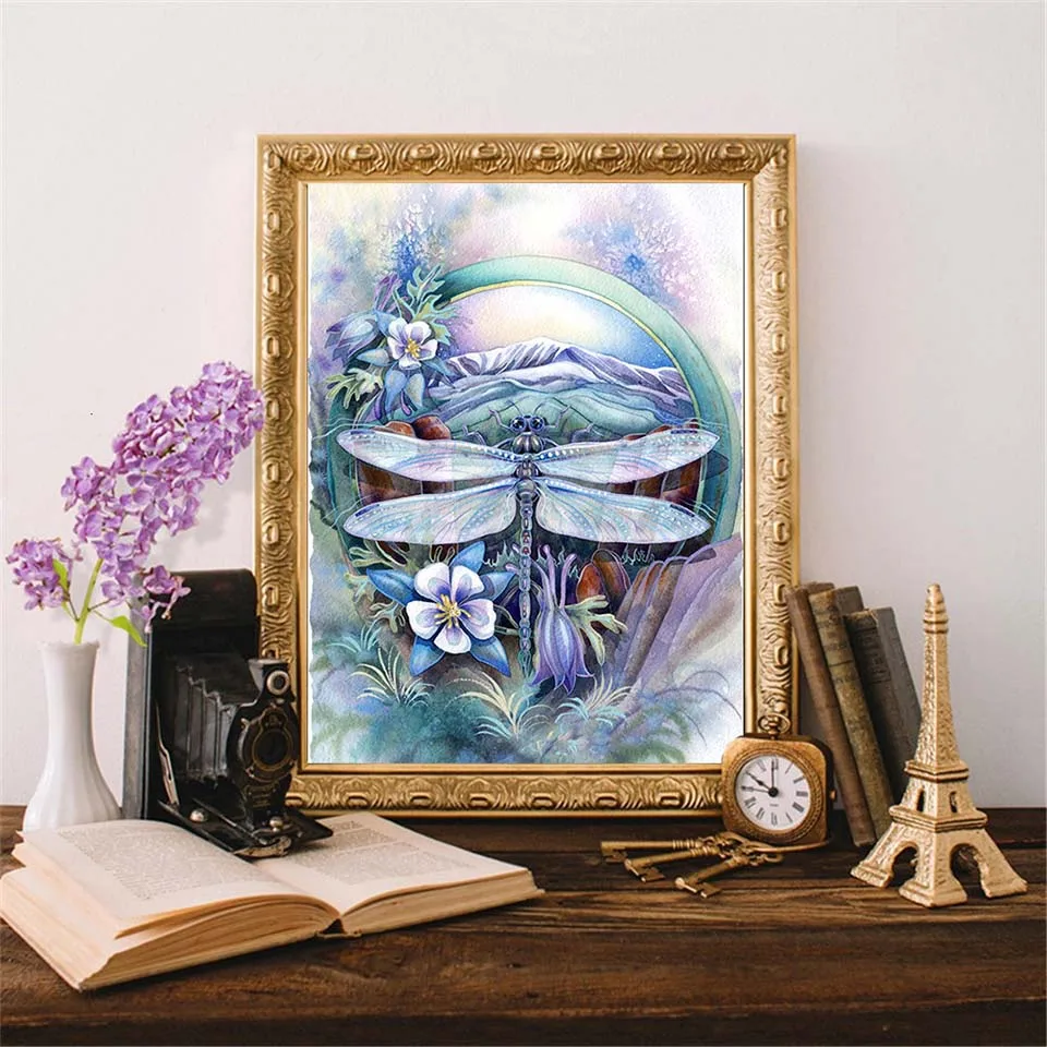 Полноразмерная квадратнаякруглая 5D алмазная живопись, абстрактная стрекоза, цветы, diy вышивка, мозаика стразы, вышивка крестиком, ручная работа