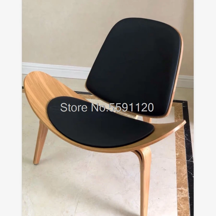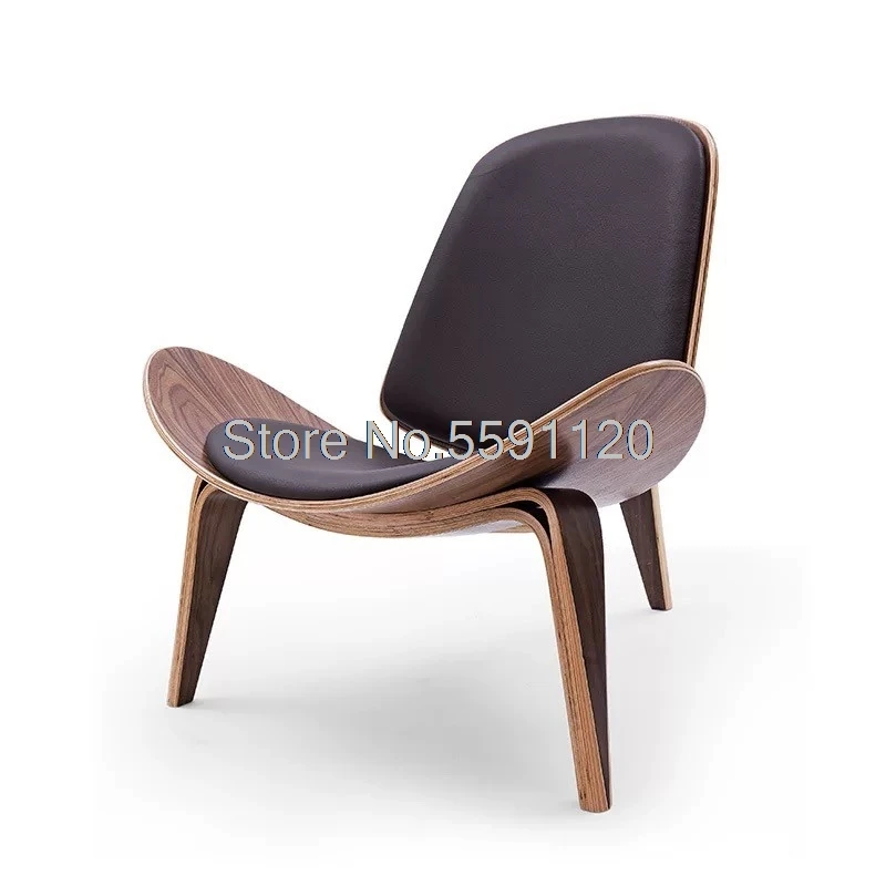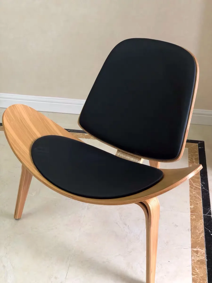 Трехногая оболочка стул пепельная фанера черная искусственная кожа Мебель для гостиной Современная оболочка стул Реплика