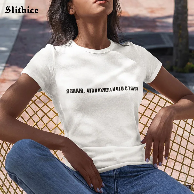 Модная футболка Slithice с надписью на русском языке, летняя одежда...