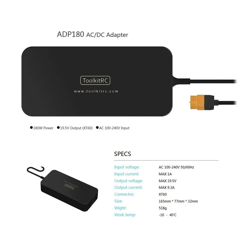 В комплект входит: 1 x ToolkitRC ADP-180MB источник питания 1 х кабель