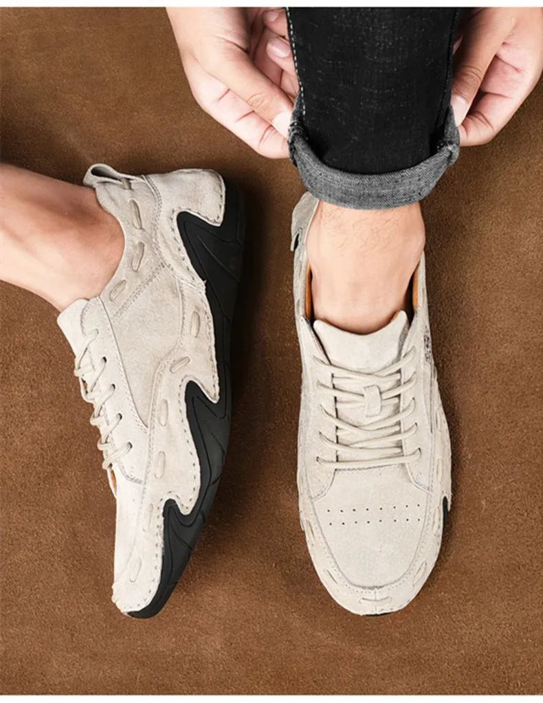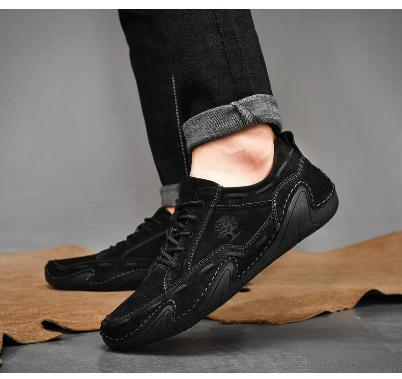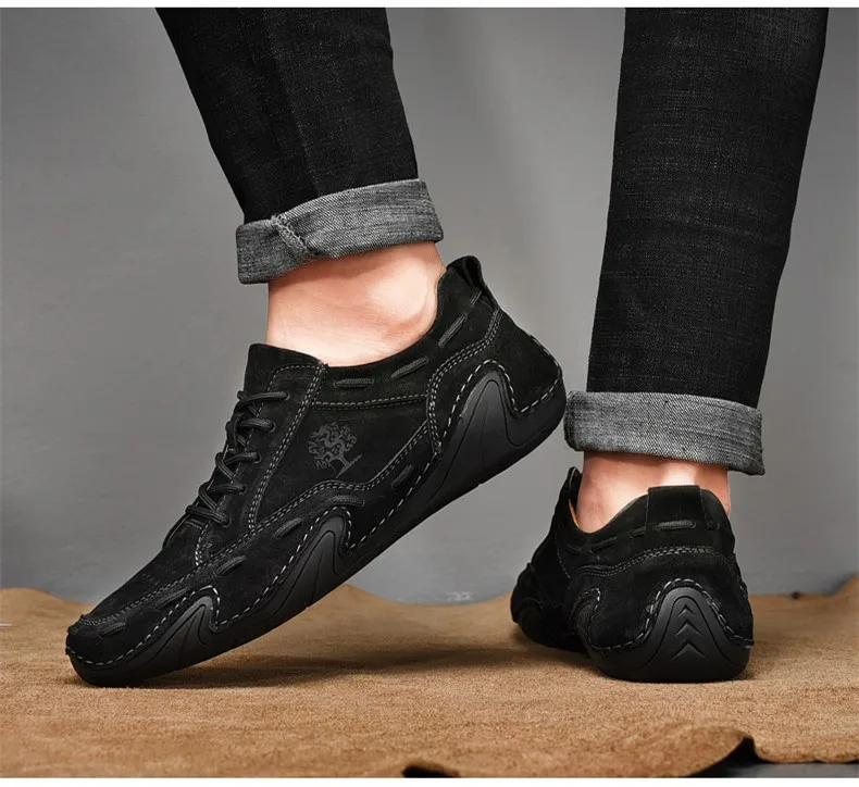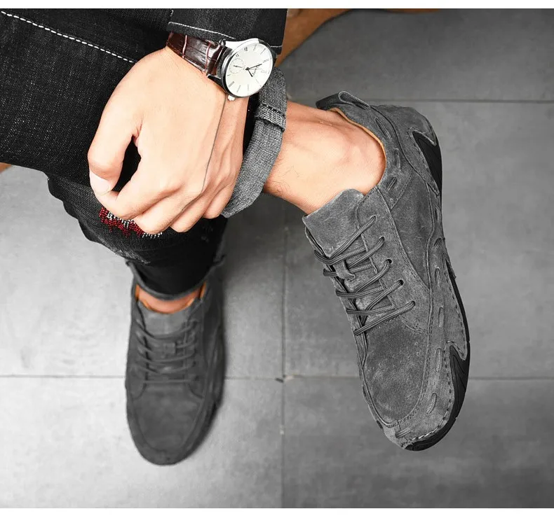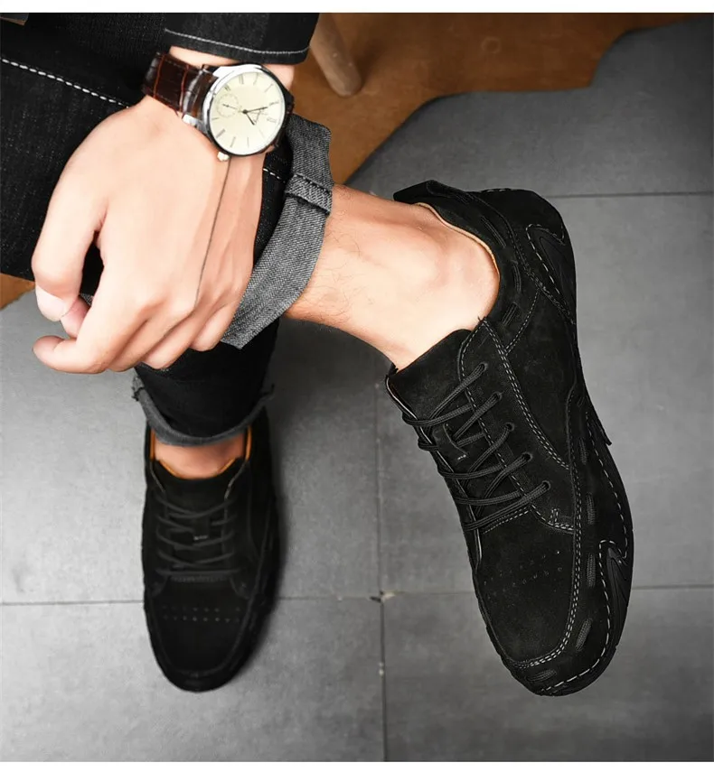 Мужская повседневная обувь на плоской подошве, Мужские дышащие мокасины ручной работы из удобная обувь; Лоферы натуральной кожи, уличные мужские кроссовки
