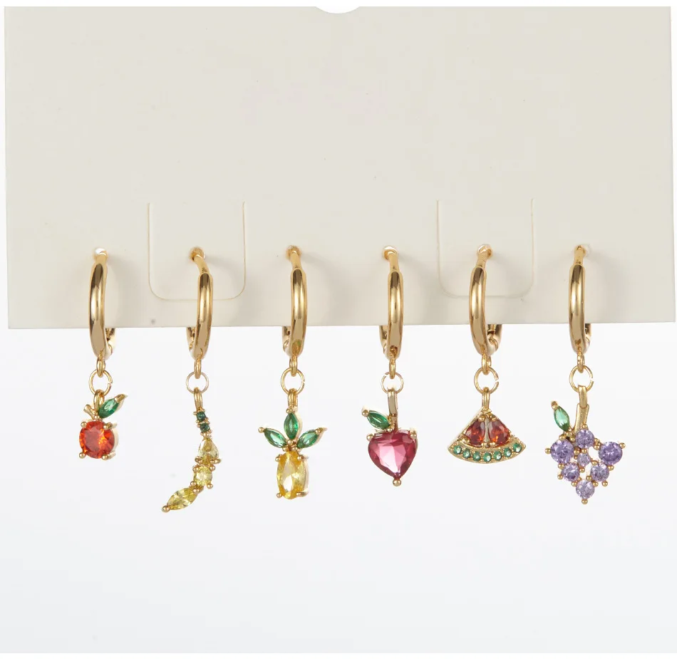 Серьги-подвески с фруктовой хрящевой тканью женские, милые разноцветные Серьги Для Пирсинга с кристаллами, виноградом, Персиком, вишней, 1 шт., 2020