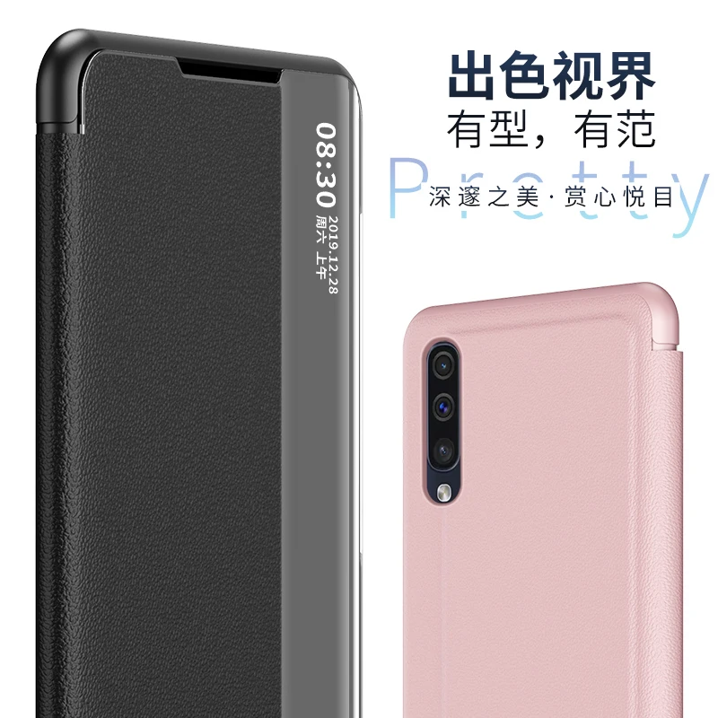 Для Samsung Galaxy A50 A70 A80 A90 A30S A50S S A 50 70 80 90 Новое поступление кожаные флип-кейсы прозрачные смарт-Чехлы для окон