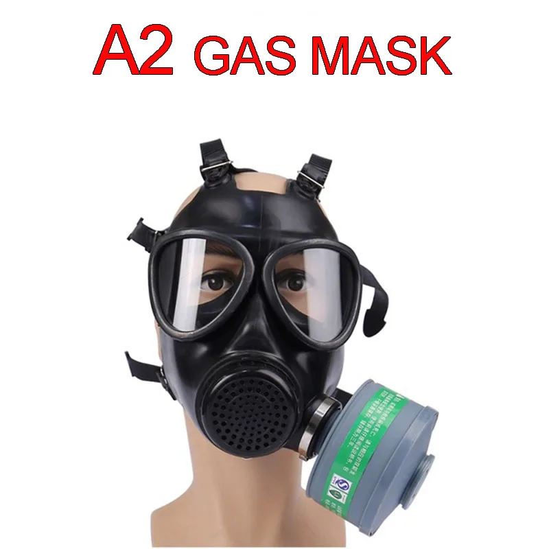 Газовая маска A3Тип защиты: кислотные Газы и пары, такие как: диоксид серы, хлор, углекислый газ, сероводород, оксиды азота, фосген, фосфор и хлорсодержащие органические пестициды.