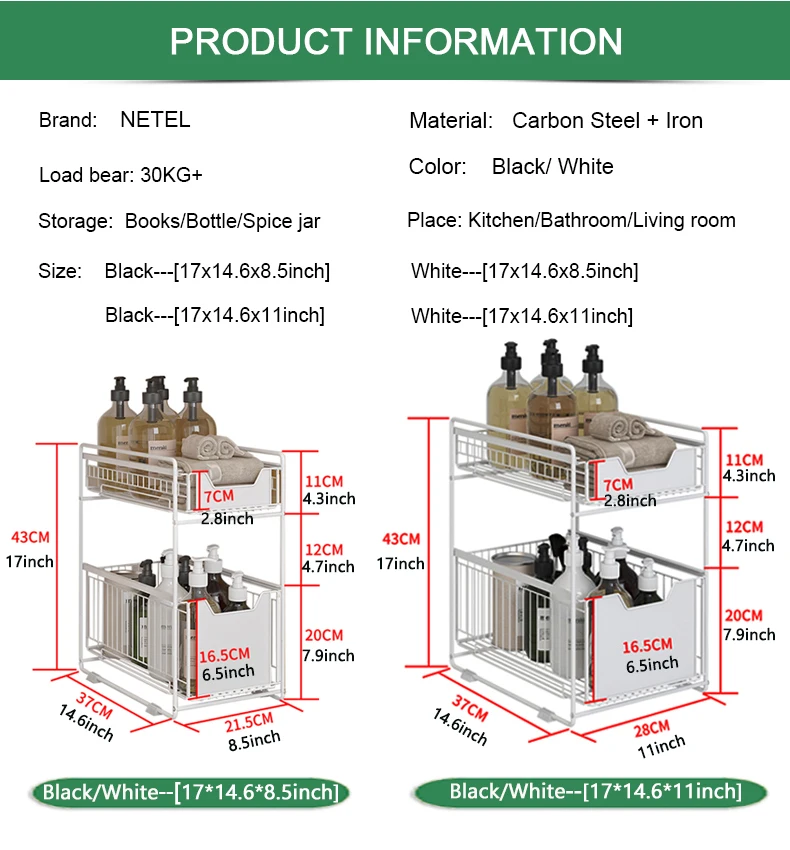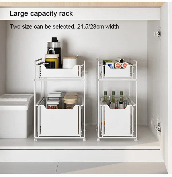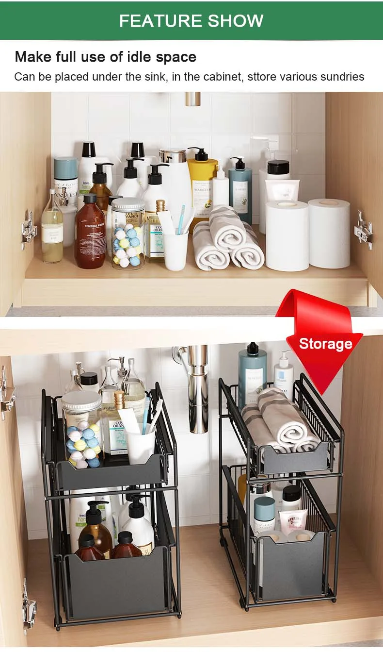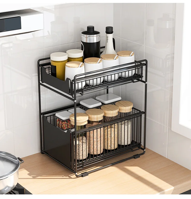 Стеллаж для хранения под раковиной NETEL, 2 яруса, раздвижной шкаф, корзина, столешница, выдвижной органайзер, Полка для специй на кухне