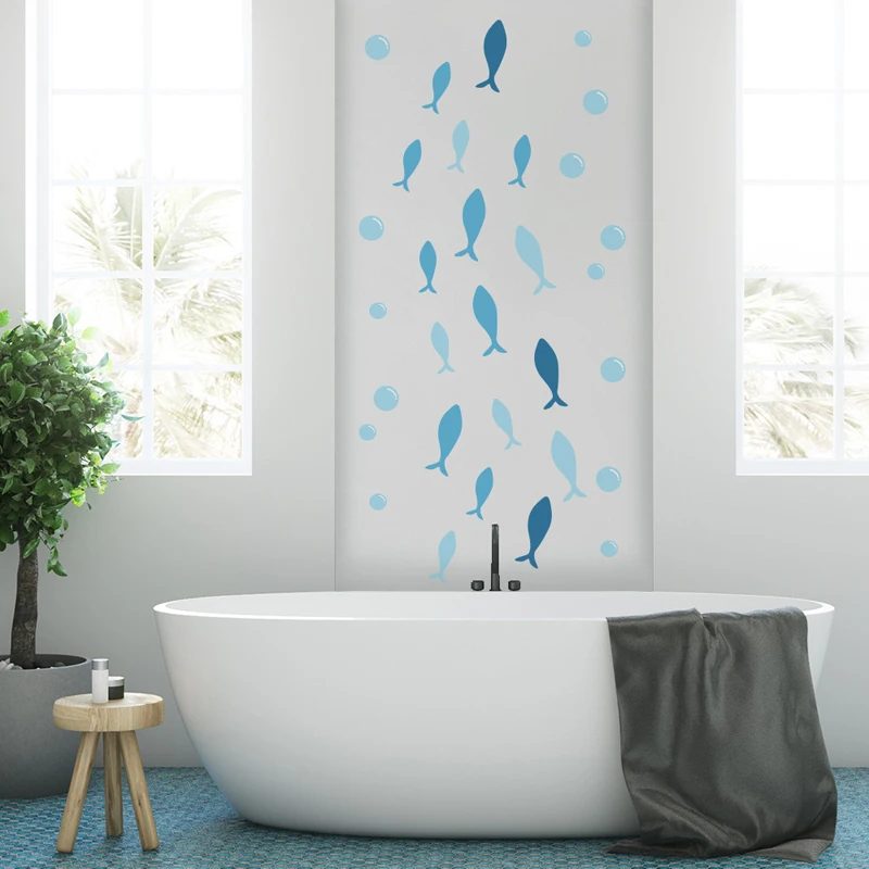 42 шт.компл. виниловая наклейка на стены в виде синей рыбы для детской комнаты, ванной комнаты, наклейки сделай сам, украшение для детской комнаты в виде морской рыбы, арт PA169