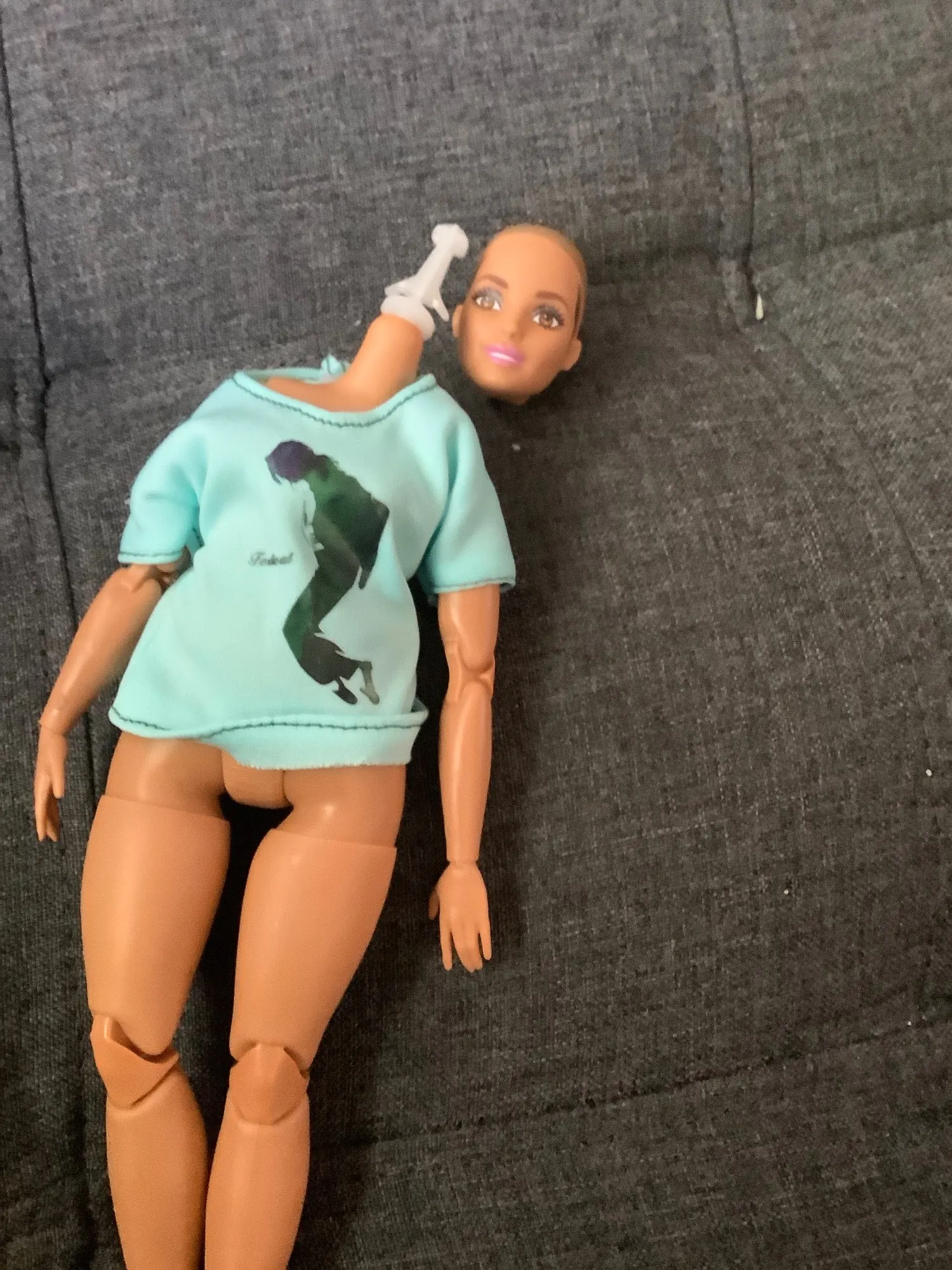 голова прекрасная, без изъянов. но на тело, которое было у меня в наличии, не подошла. голова слишком загорелая. придется искать загорелое тело для Кена.