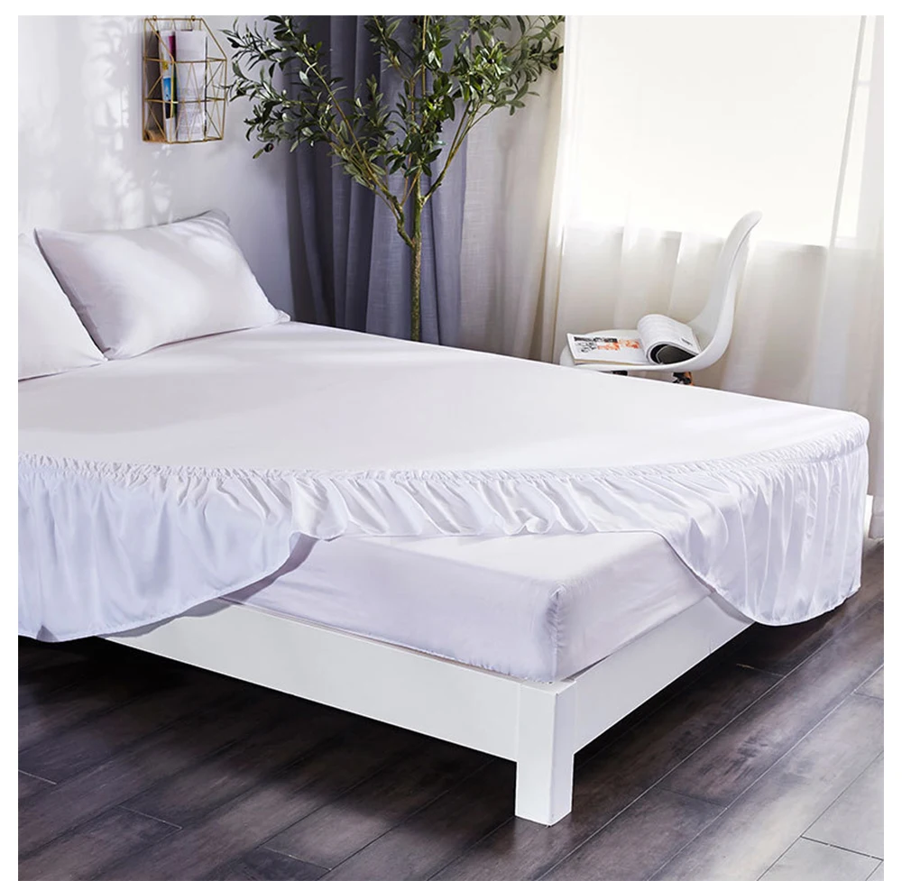 Однотонная эластичная юбка для кровати, облегающие по бокам съемные постельные Рубашки без выцветания, Королевский размер, украшение для кровати в отеле