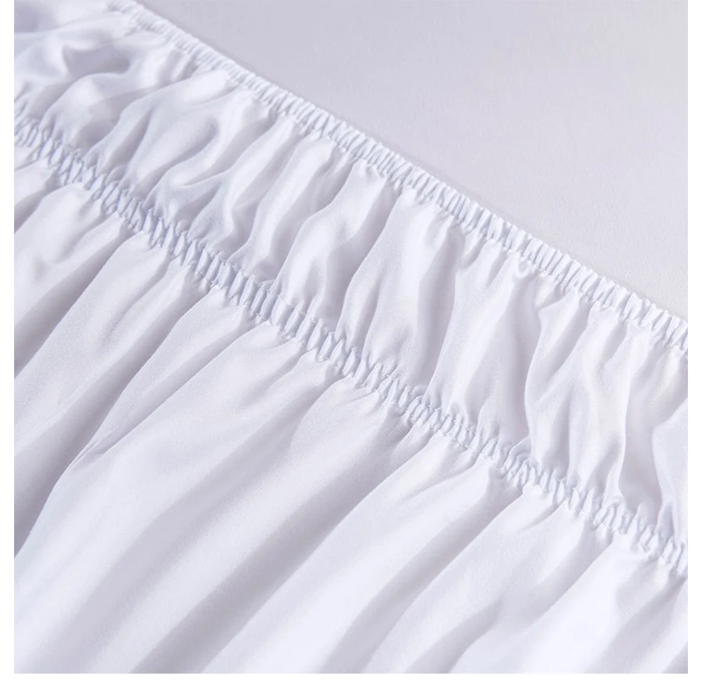 Однотонная юбка-кровать изготовлена из освежающей ткани из полиэфирного волокна, которая не выцветает и не скатывается. Можно стирать в стиральной машине и легко чистить.