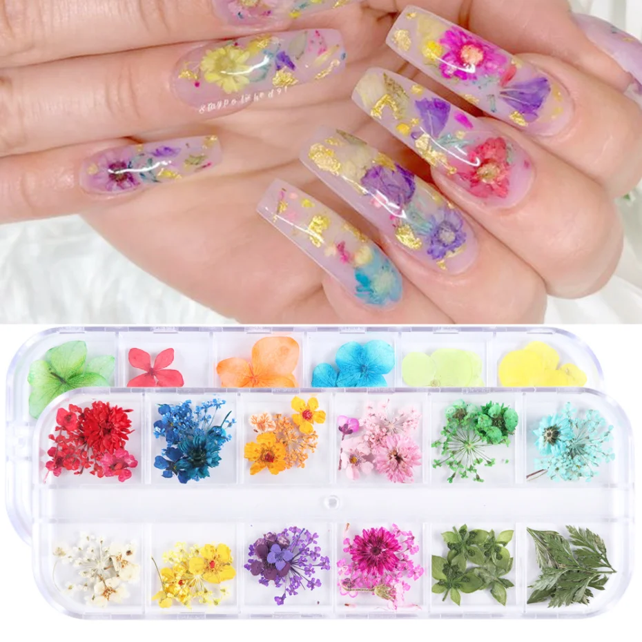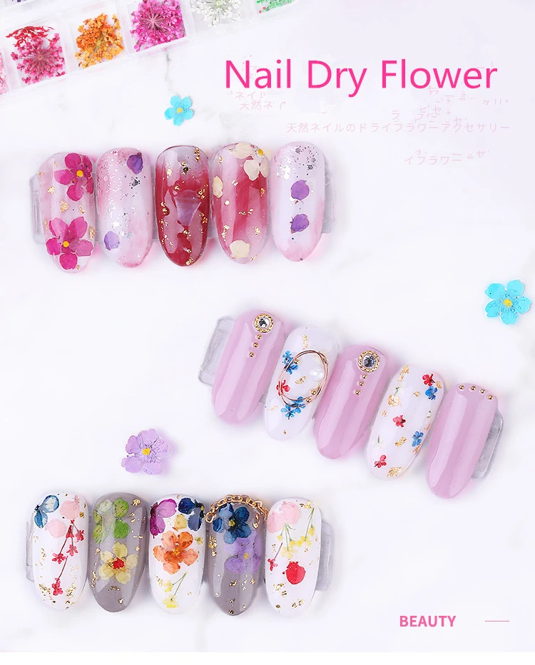1 коробка 3D высушенный цветок для ногтей украшение из натуральных тканей с цветочным узором Наклейки Смешанные сухой цветок DIY Nail Art наклейки украшения УФ-гель для ногтей маникюрный набор