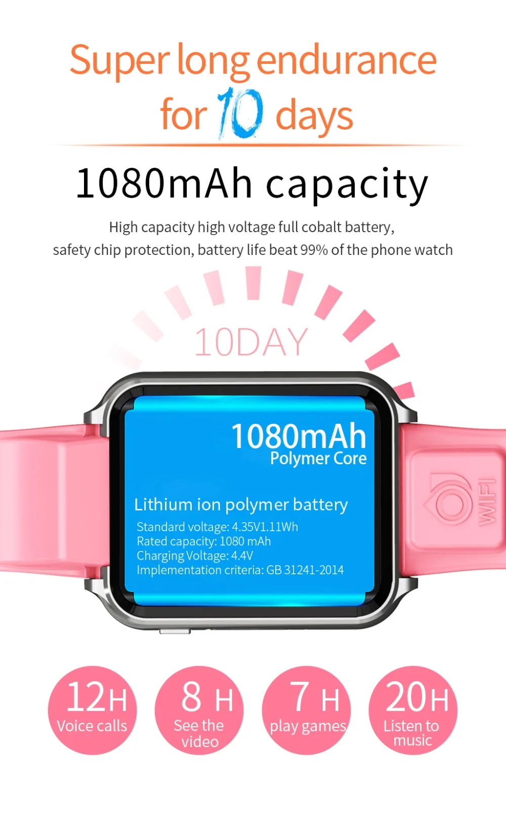 Смарт-часы для мальчиков и девочек, 4G, Android, GPS-навигация, поддержка Wi-Fi, двух камер