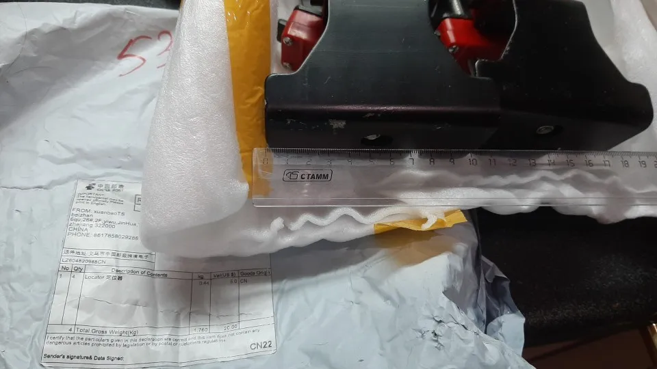 В целом штуковины рабочие, но состояние - б/у, будто со стройки инвентарь распродавали. Отметки высоты как бы есть, но край подвижной лапки болтается на несколько мм так, что в них пропадает какой-либо смысл. Обратите внимание - хреновины здоровые, для понимания на фото приложена линейка. In general - these are ok handy thingies, but in particular - the ones I've received look like second-hand ones sold from the construction site. Level marks are kinda present, but the moving part'edge is hanging loose on the screw (± few mm) so the readings on the scale does not make much sense. Also - keep in mind the actual size, see the photo.