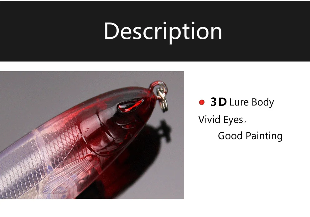 3. Приманки имеют реалистичную картину и яркие 3D глаза, они делают приманку похожей на настоящую рыбу, плавающую в воде во время рыбалки.