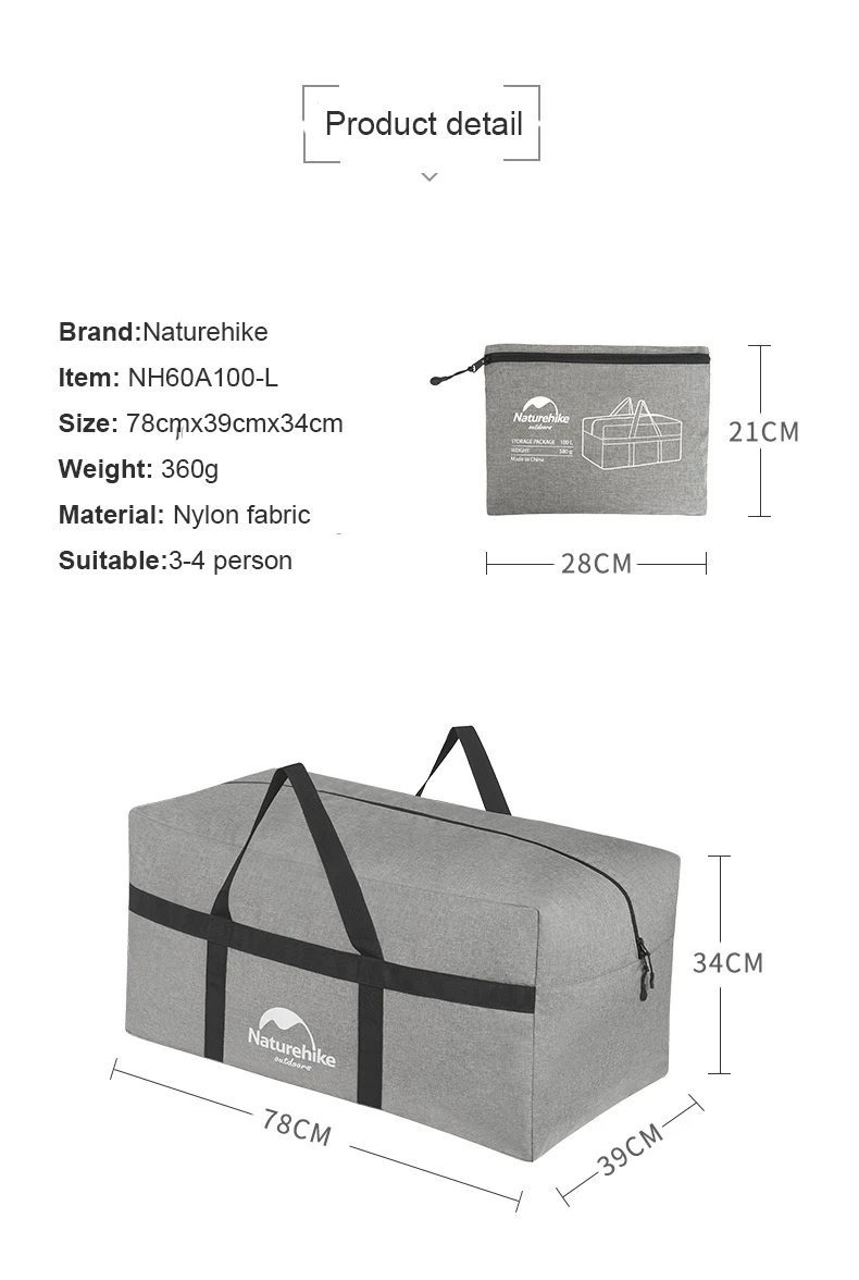 Naturehike 100L сумки для хранения на открытом воздухе, сумка с ручкой, большая емкость, сумки для плавания, водонепроницаемая дорожная походная сумка для спортзала