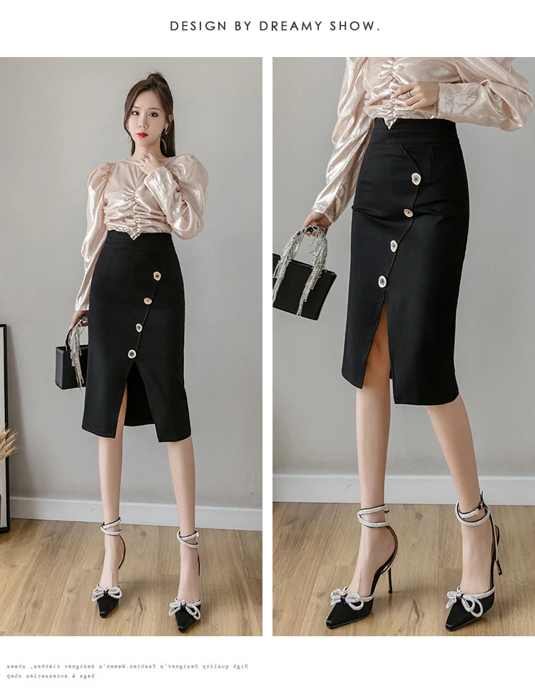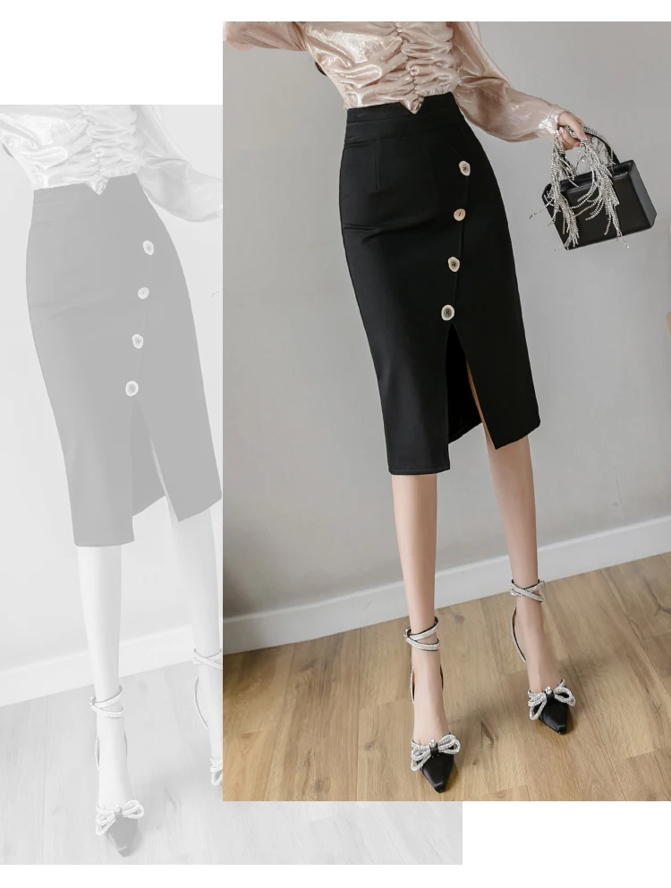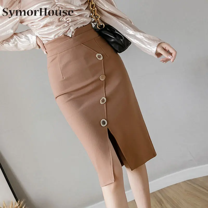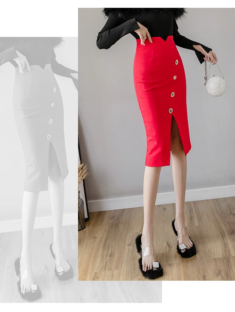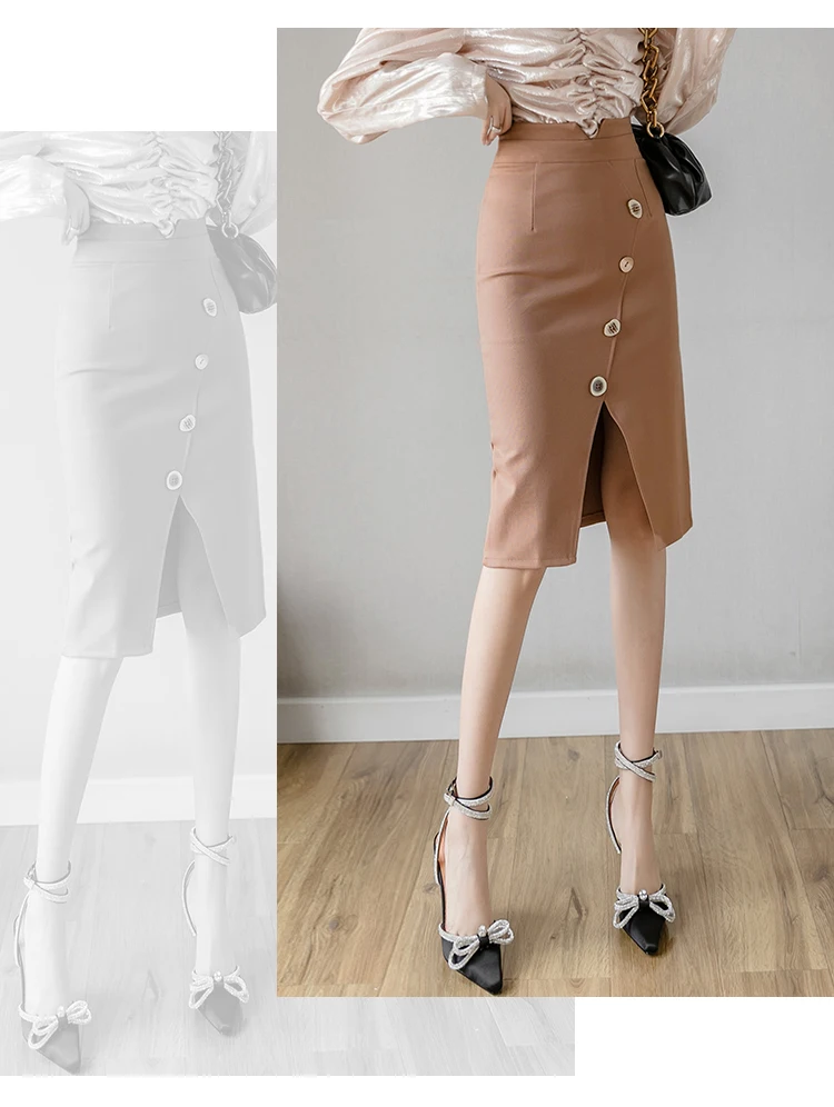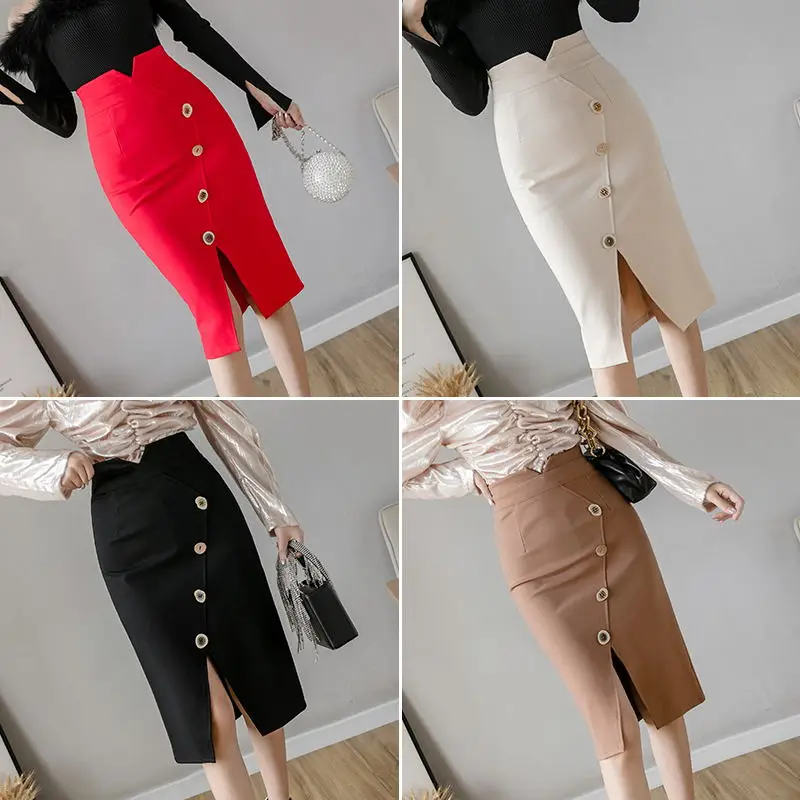 Женские юбки из шифона новые модные размера плюс миди юбки на пуговицах эластичное облегающее обтягивающая одежда юбка для женщин элегантные офисные юбки-карандаш
