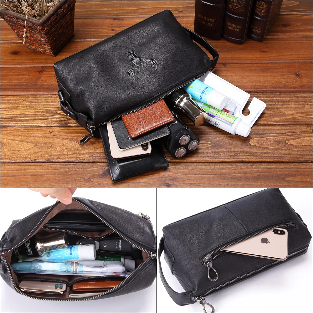 Новая мужская косметичка GENODERN из высококачественной коровьей кожи, дорожный Повседневный чехол для туалетных принадлежностей, сумочка для косметики
