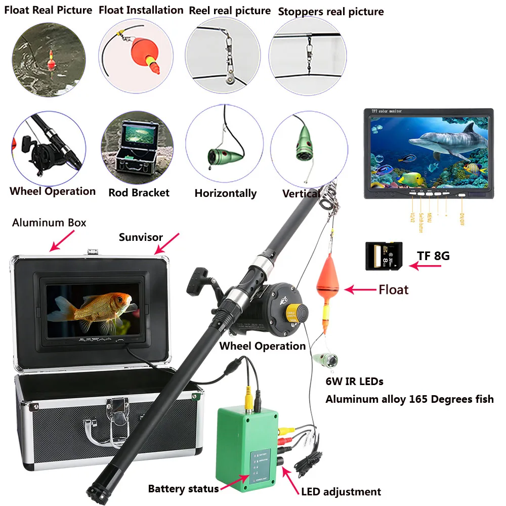 Этот продукт, который вы смотрите сейчас, является новейшей популярной, модной, красивой и удобной подводной видеокамерой. Он не только имеет большой и цветной экран, но также имеет камеру определения высоты, которая имеет ТВ-линии HD 1000. Его можно использовать с телескопической удочкой, для источника светильник камеры есть мощный светильник 6 Вт, и эти 6 ИК светильник п отделены от камеры, чтобы предотвратить попадание воды в камеру. Что более важно, эта система подводного монитора также имеет функцию DVR и фото. Кроме того, этот товар поставляется с TF-картой 8 ГБ, и эта система максимально поддерживает TF-карту 32 Гб.