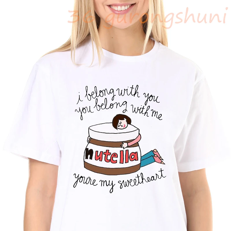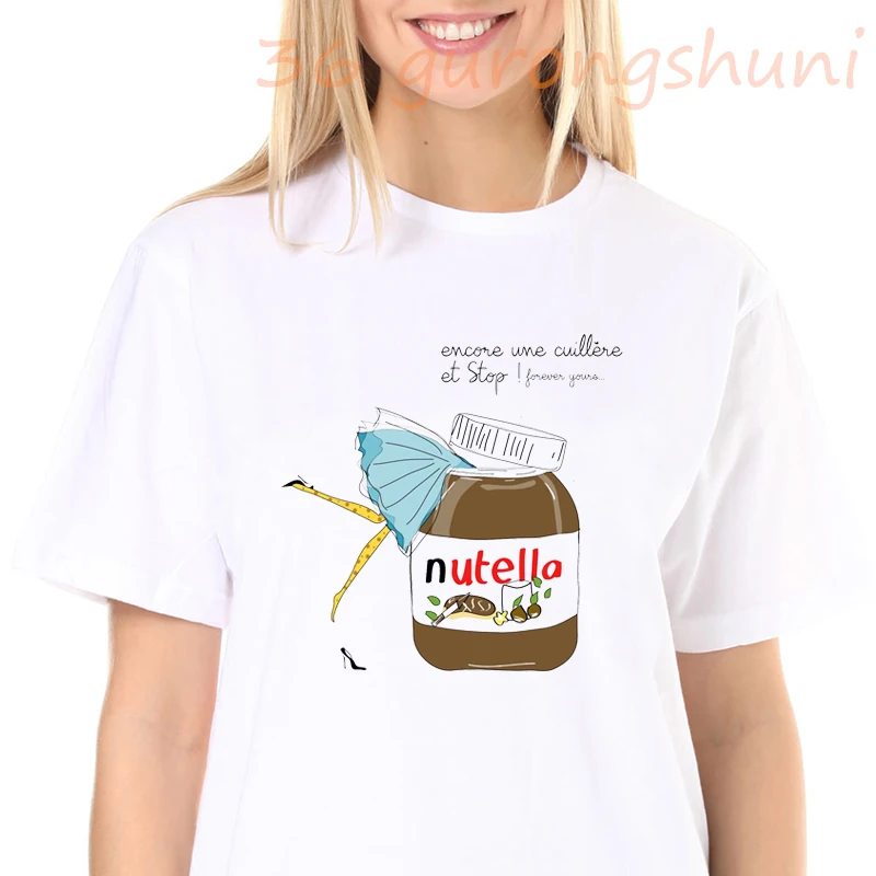 Женская футболка с принтом Nutella, модная футболка Harajuku Ullzang, забавная белая футболка с графическим принтом, женские футболки с индивидуальным рисунком