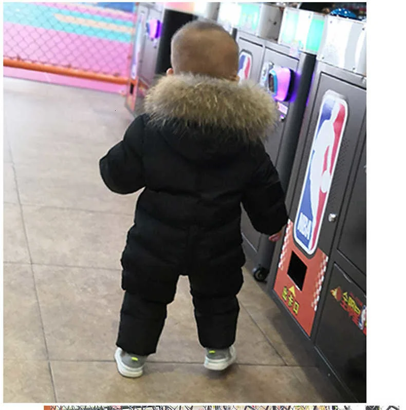 Комбинезон детский, для мальчиков с морозом до-30 градусов, детская зимняя одежда натуральный мех, 90% утиный пух, пуховик для девочки